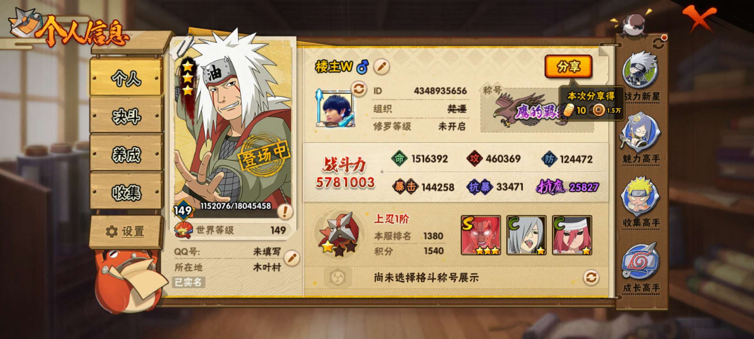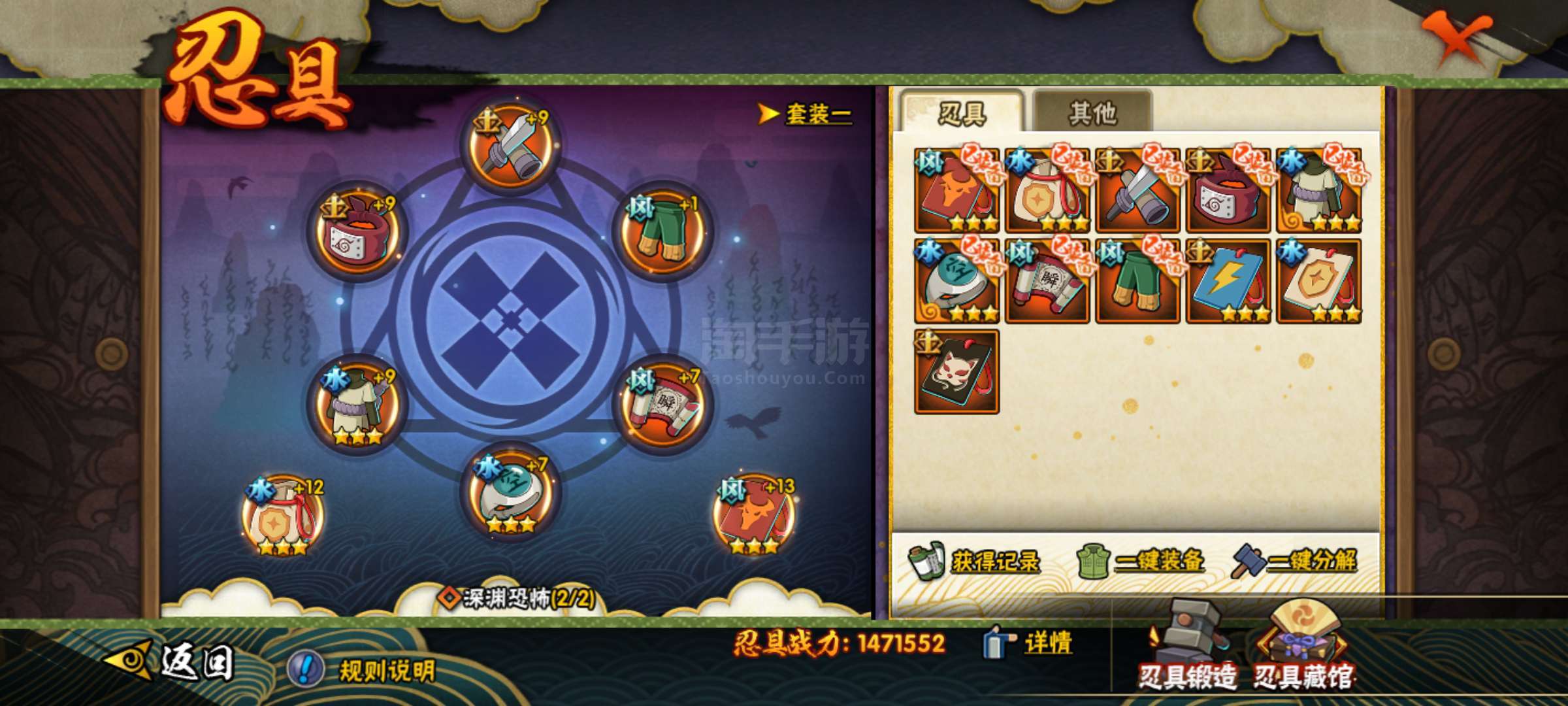 有专属待机及奥义图,鹰香磷。忍具还有两个三星究