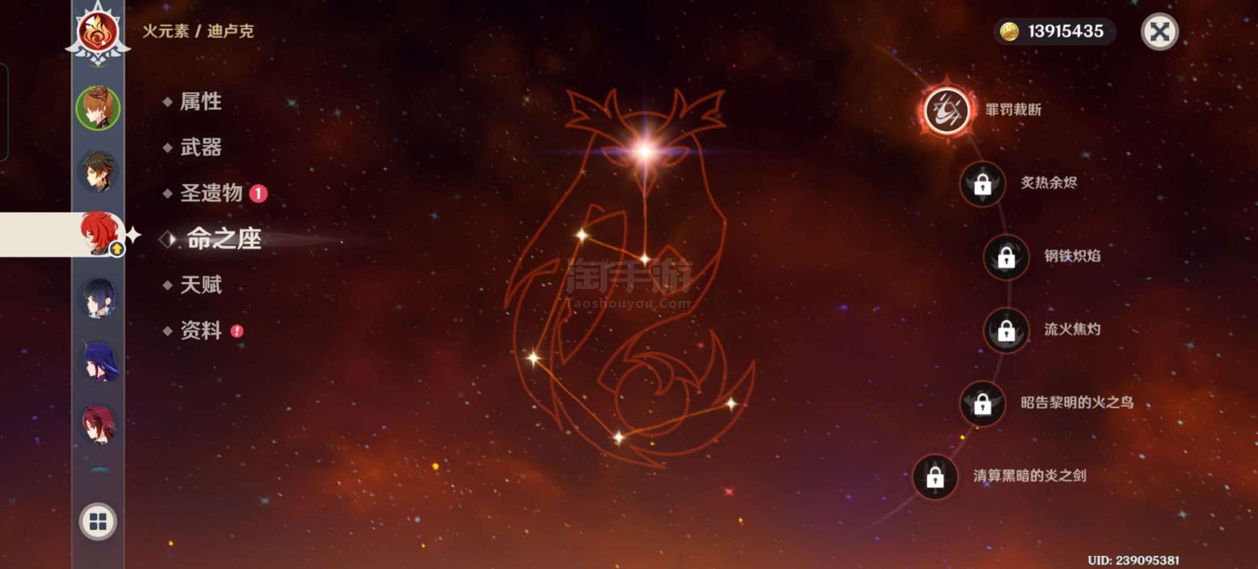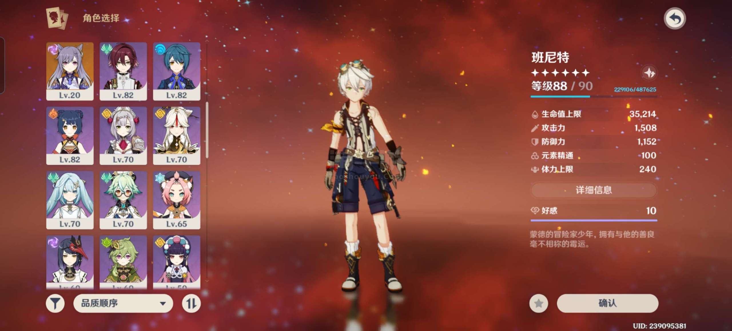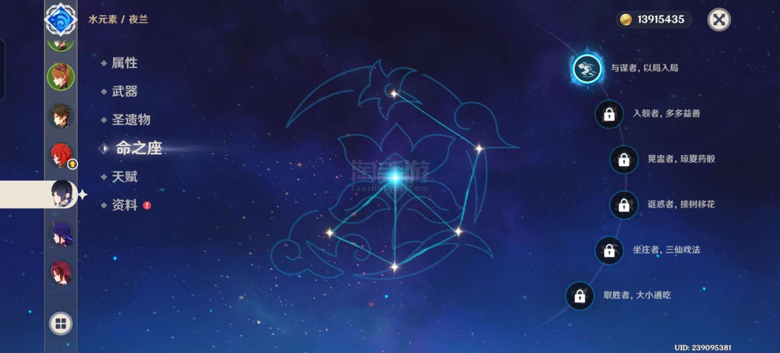 玩了两年的账号,不想玩了便宜出了,有一命夜兰,有万达国际配队,回归礼都在,