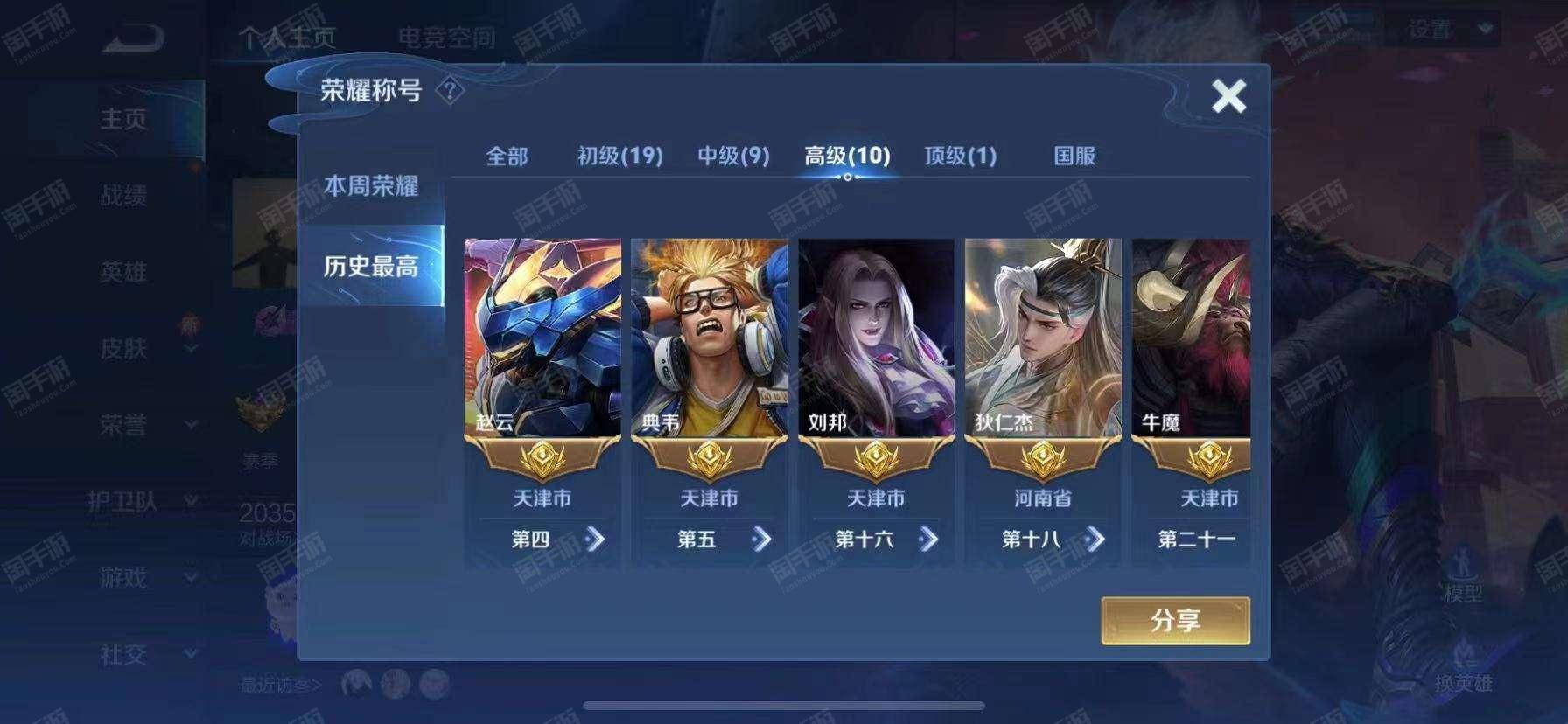 王者荣耀【苹果QQ】韩信典藏国服盘古打野60段10省级金标澜fmvp赤拳引擎之心蓝屏警告
