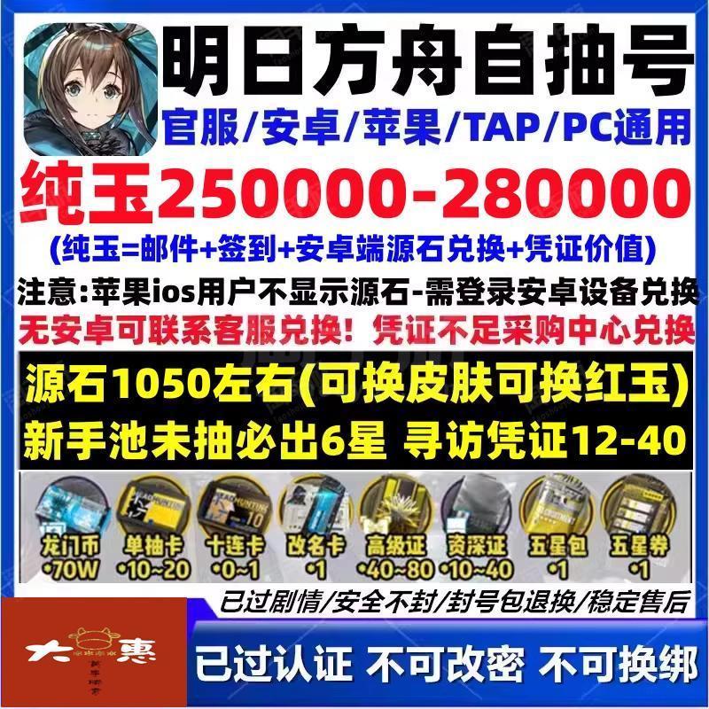 安卓官服ios苹果25万合成玉含1030+源石自抽号石头号