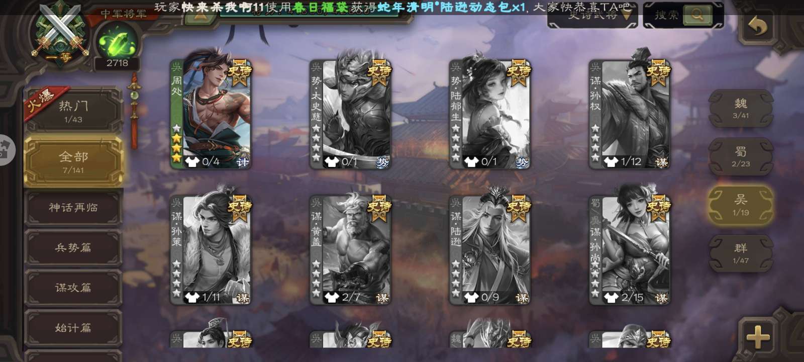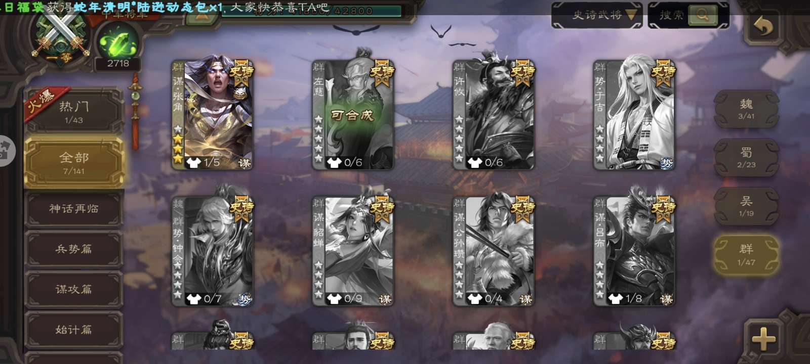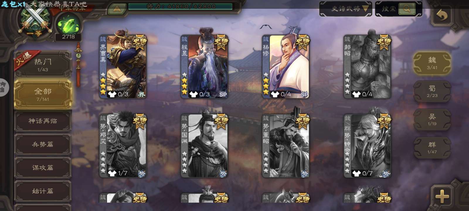 史诗武将数量: