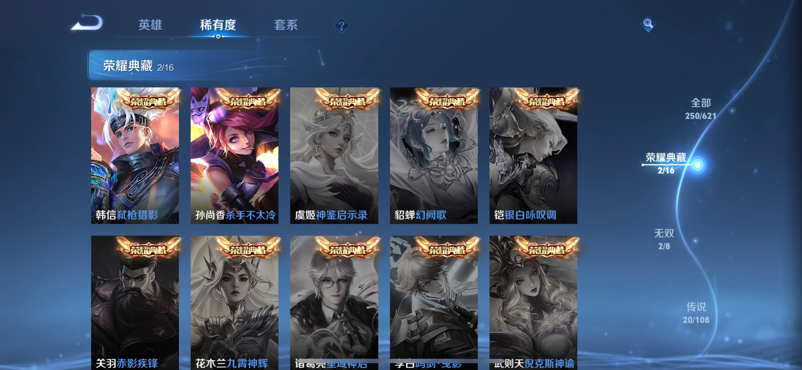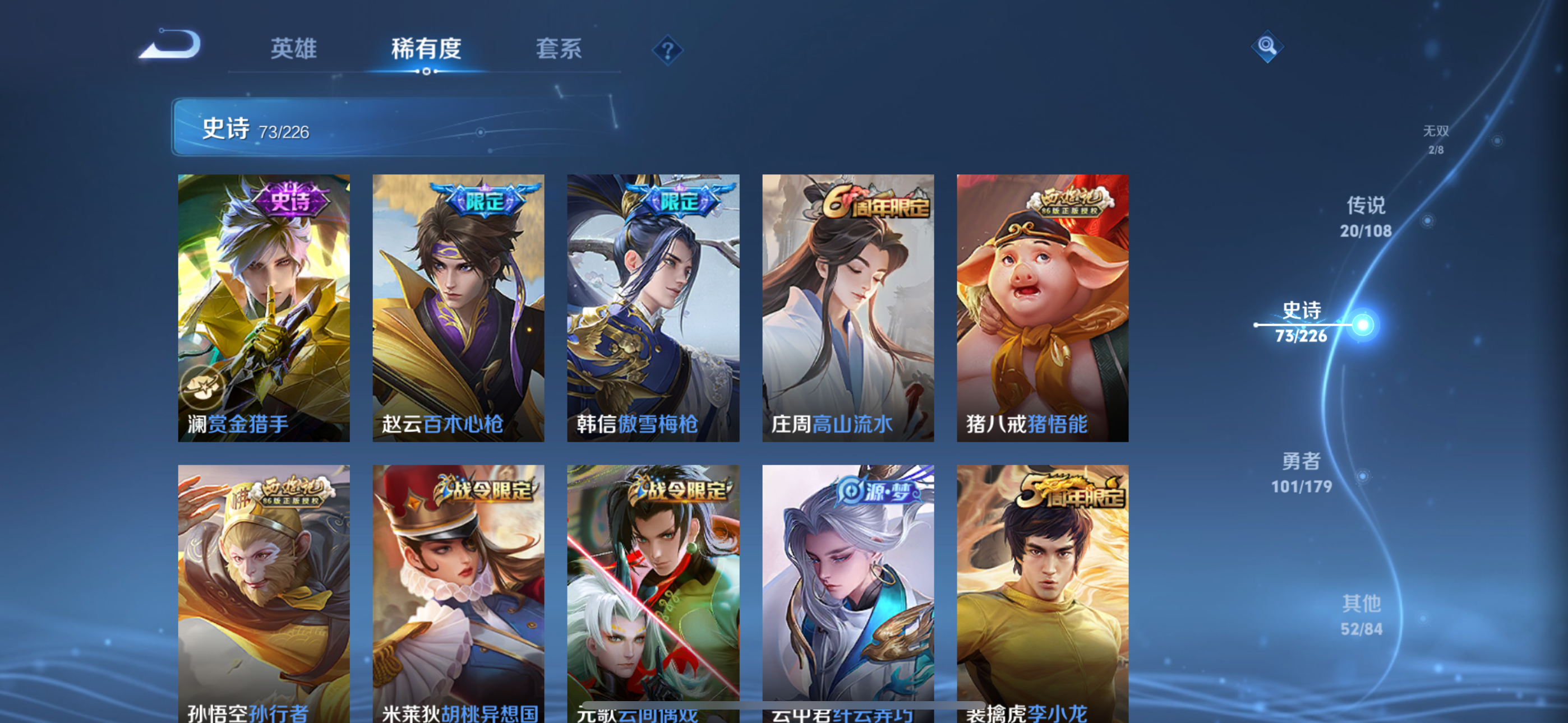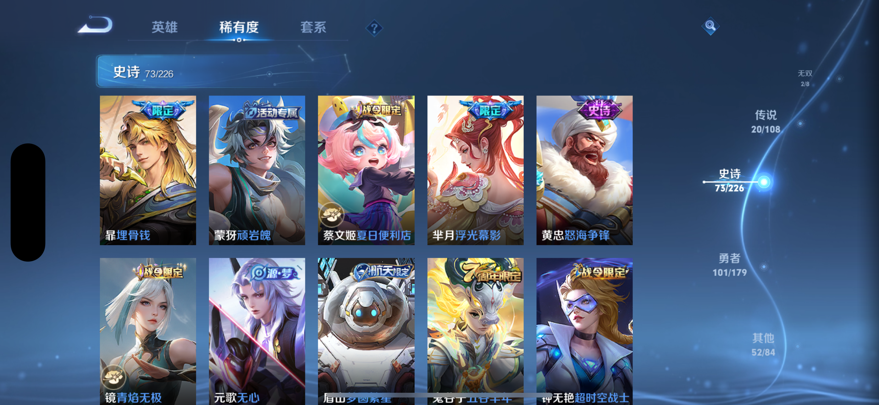 王者荣耀【苹果QQ】v9典藏2无双2传说20史诗73大多数都是限定,有二次实名