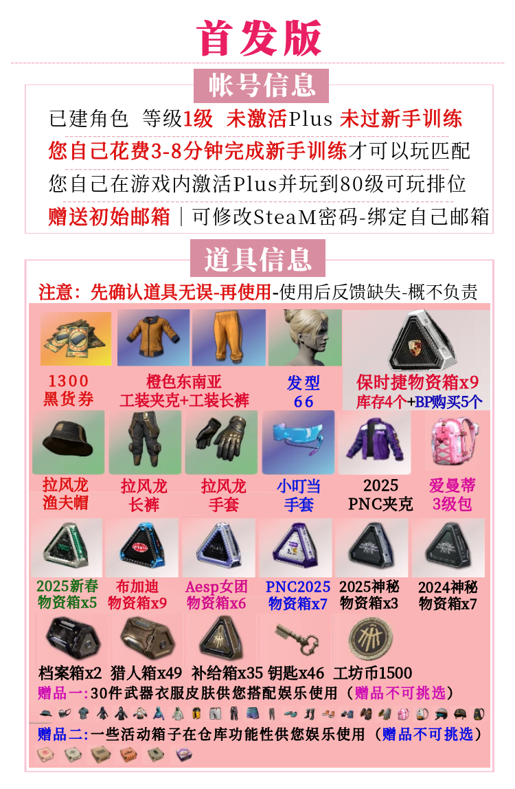 【首发版1300黑货票券+工装】详情看图帐号黑货票券皮肤武器帐号