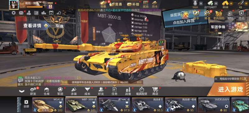 巅峰坦克【安卓官方】夏尔巴人改,装备全改,轻松上王。战无曙光天问粽子,平民极品!仓库好物多多,金币近7万,可随意发展