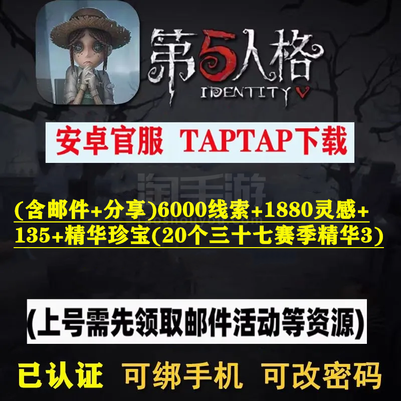 安卓官服,(含邮件+分享)6000线索+1880灵感+135+精华珍宝(20个三十七赛季精华3),已认证,等级随机,可绑手机,可改密,安全放心!