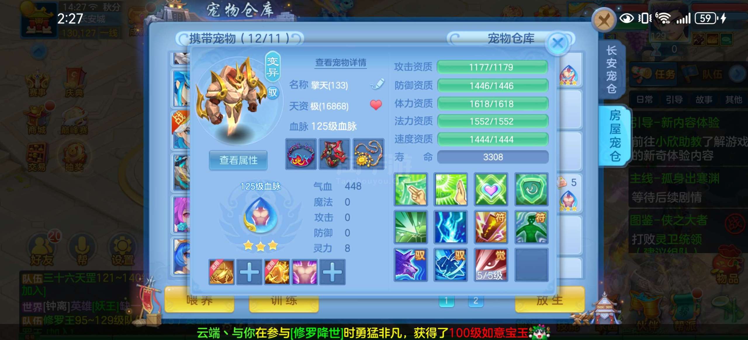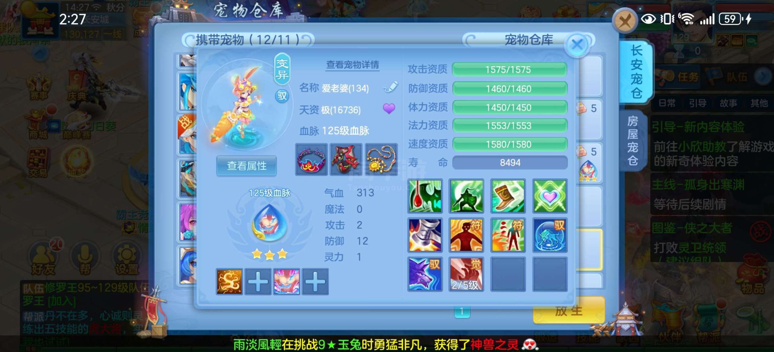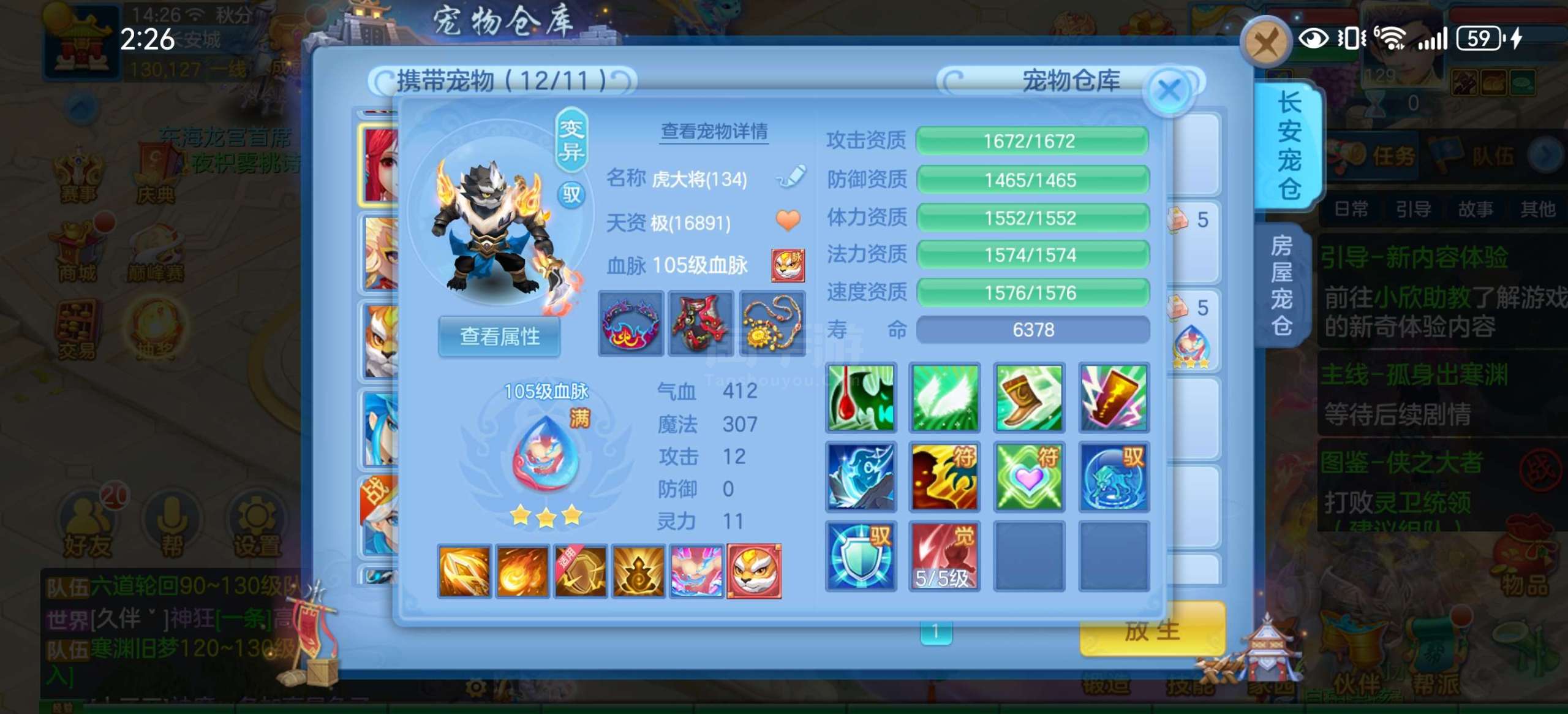 幻唐志:逍遥外传(神武4)【安卓官方】2023飞升129男普陀 宝宝配置齐全,资质爆炸,有虎大将天赋,桂花天赋,云萝天赋,