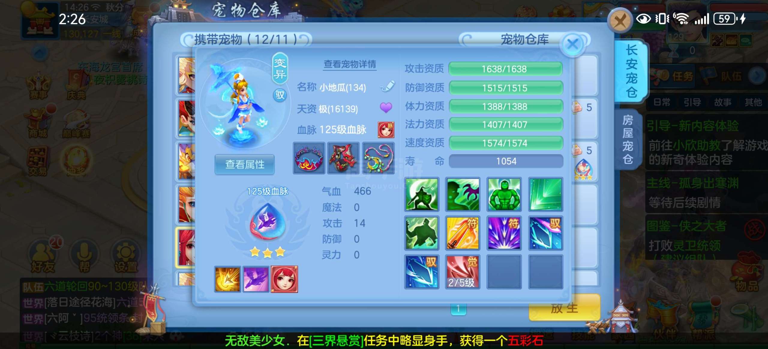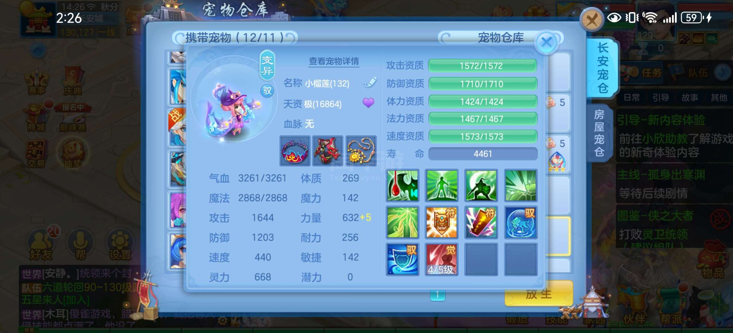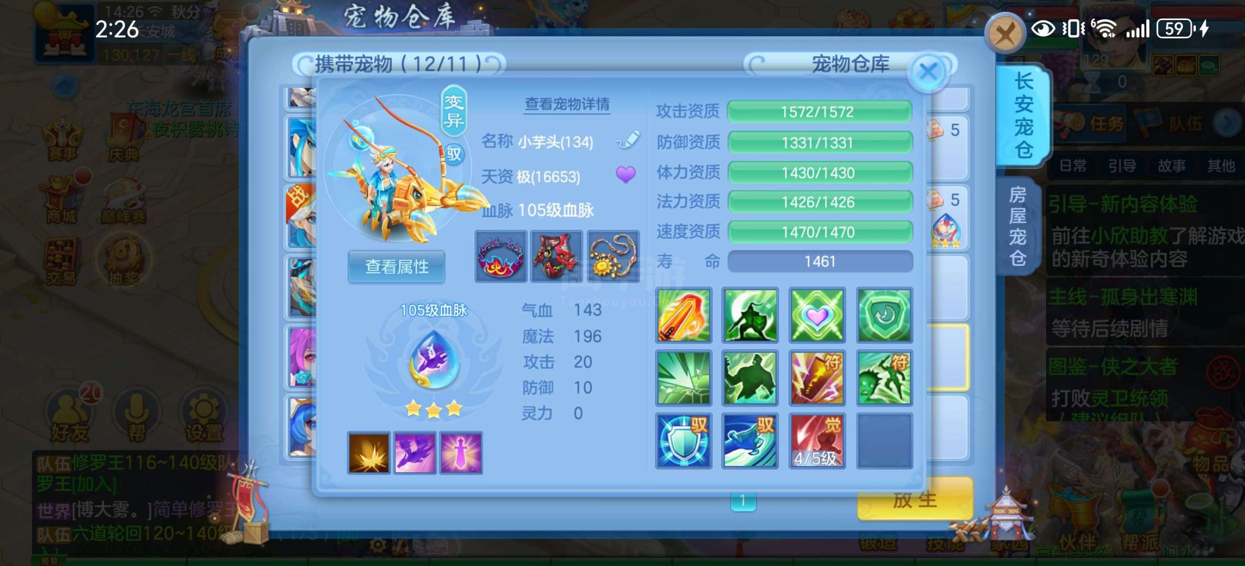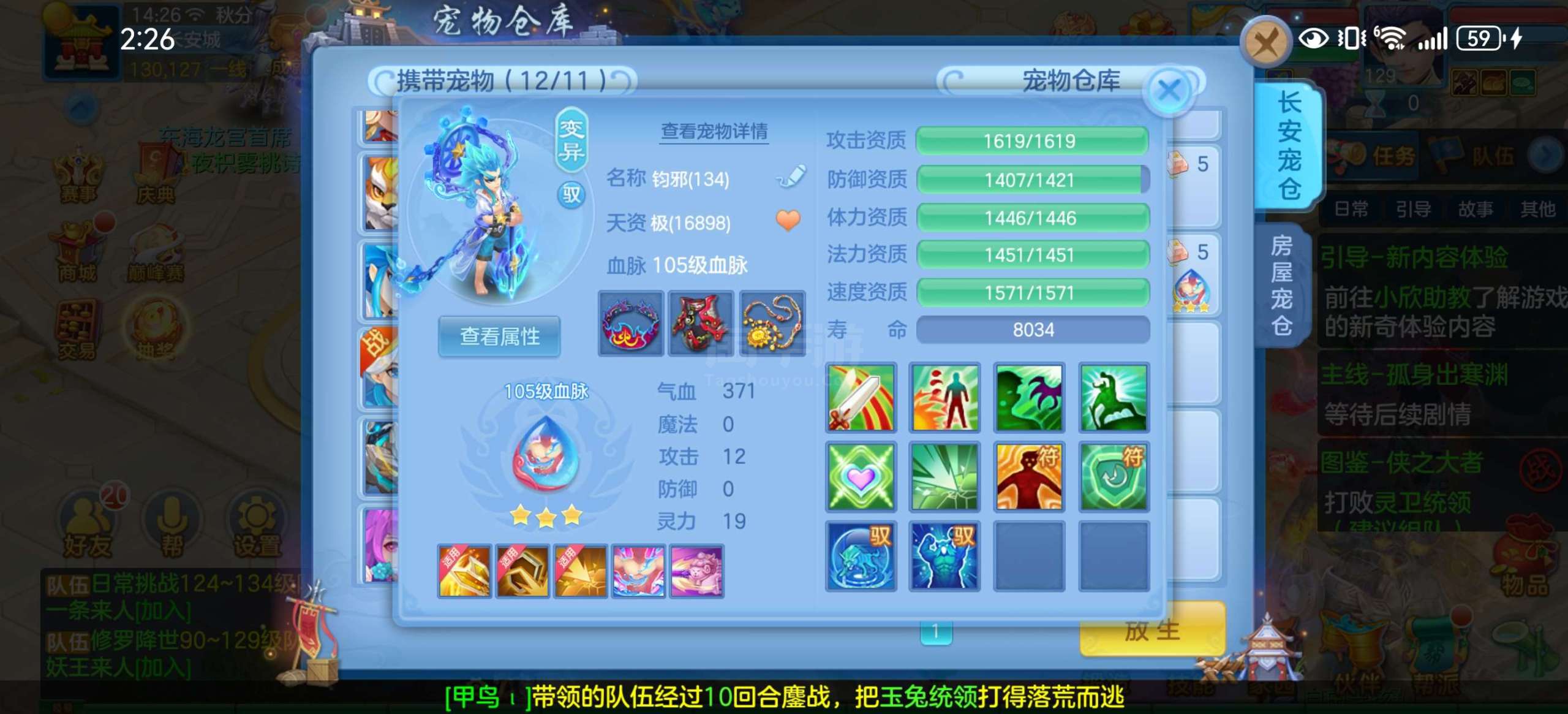 幻唐志:逍遥外传(神武4)【安卓官方】2023飞升129男普陀 宝宝配置齐全,资质爆炸,有虎大将天赋,桂花天赋,云萝天赋,
