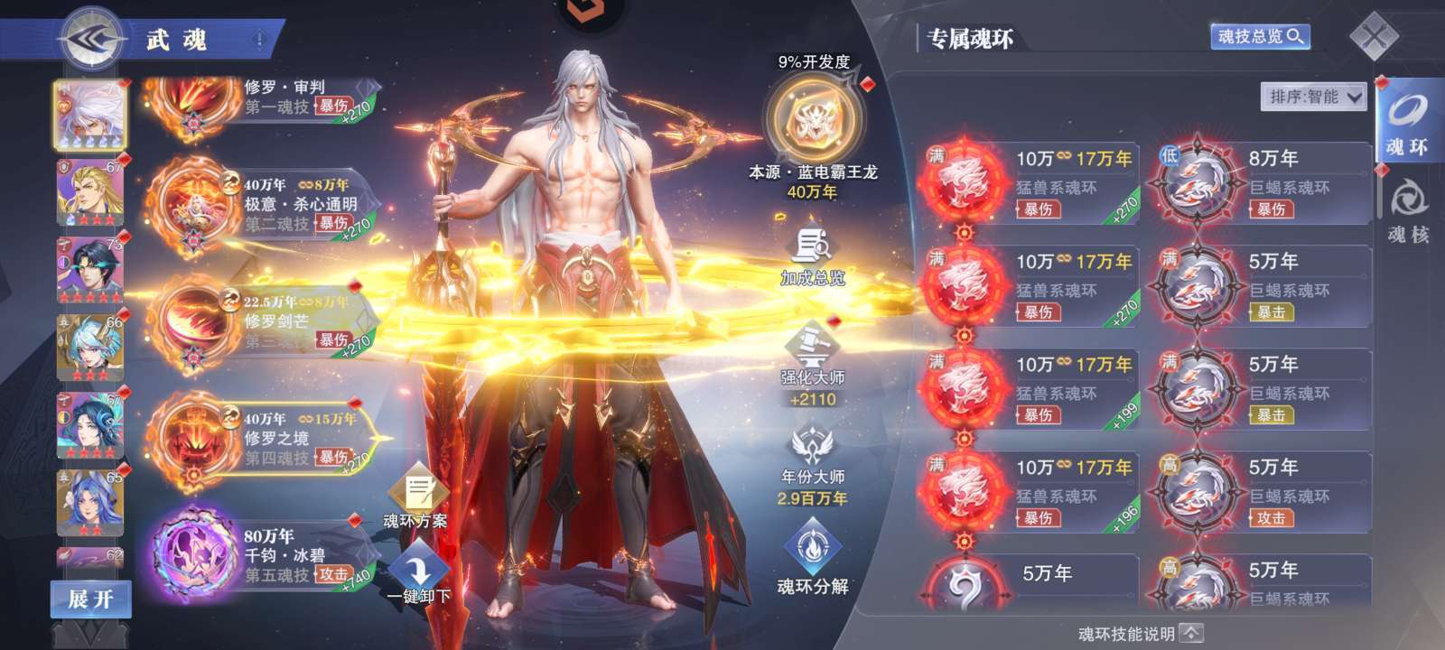 斗罗大陆:魂师对决【安卓九游】彩5极致剑道尘心,彩五三专修三,80万年冰帝,40云中鹤