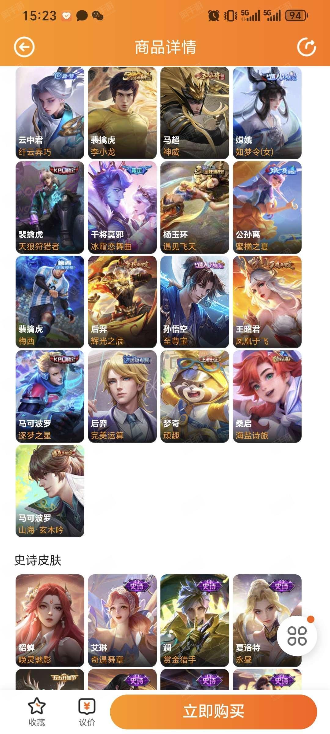 通过App,与卖家商议价格及保险,并向卖家索要账号最新截图,确认后下单购买。