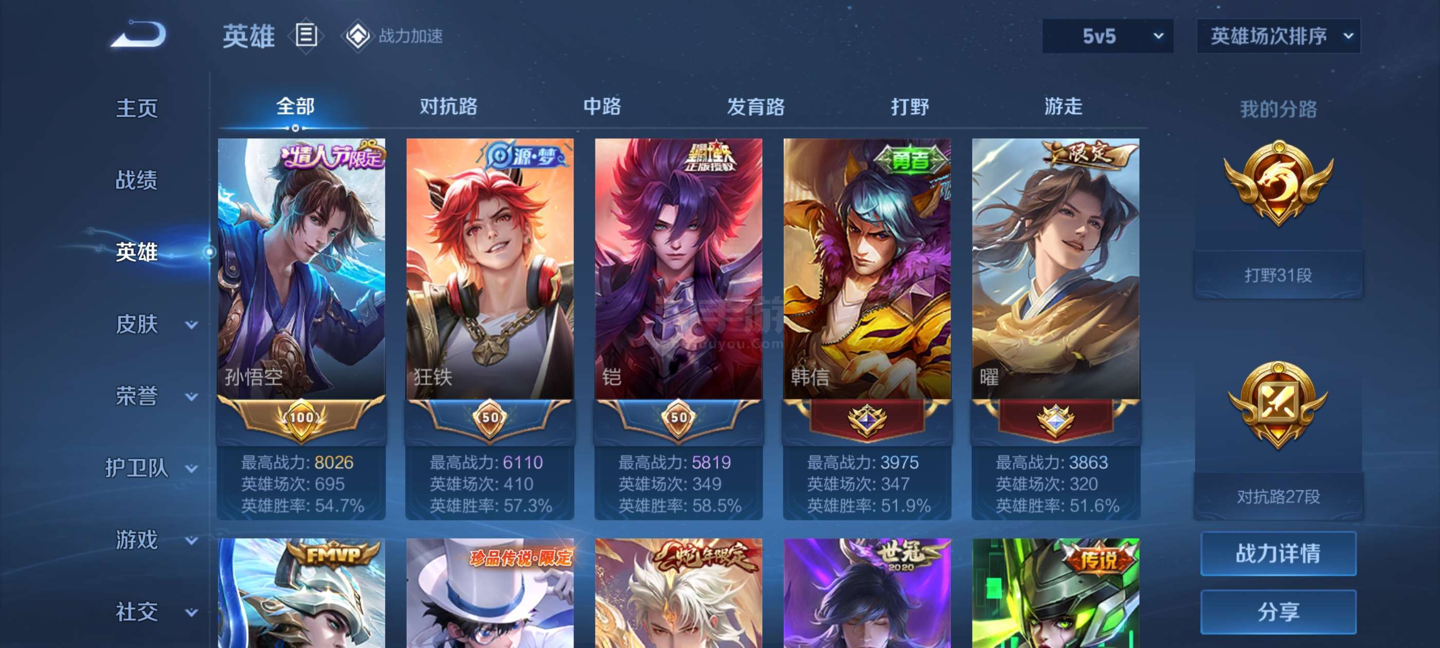 射手两个小国标,五个金标,排位最高段位传奇王者