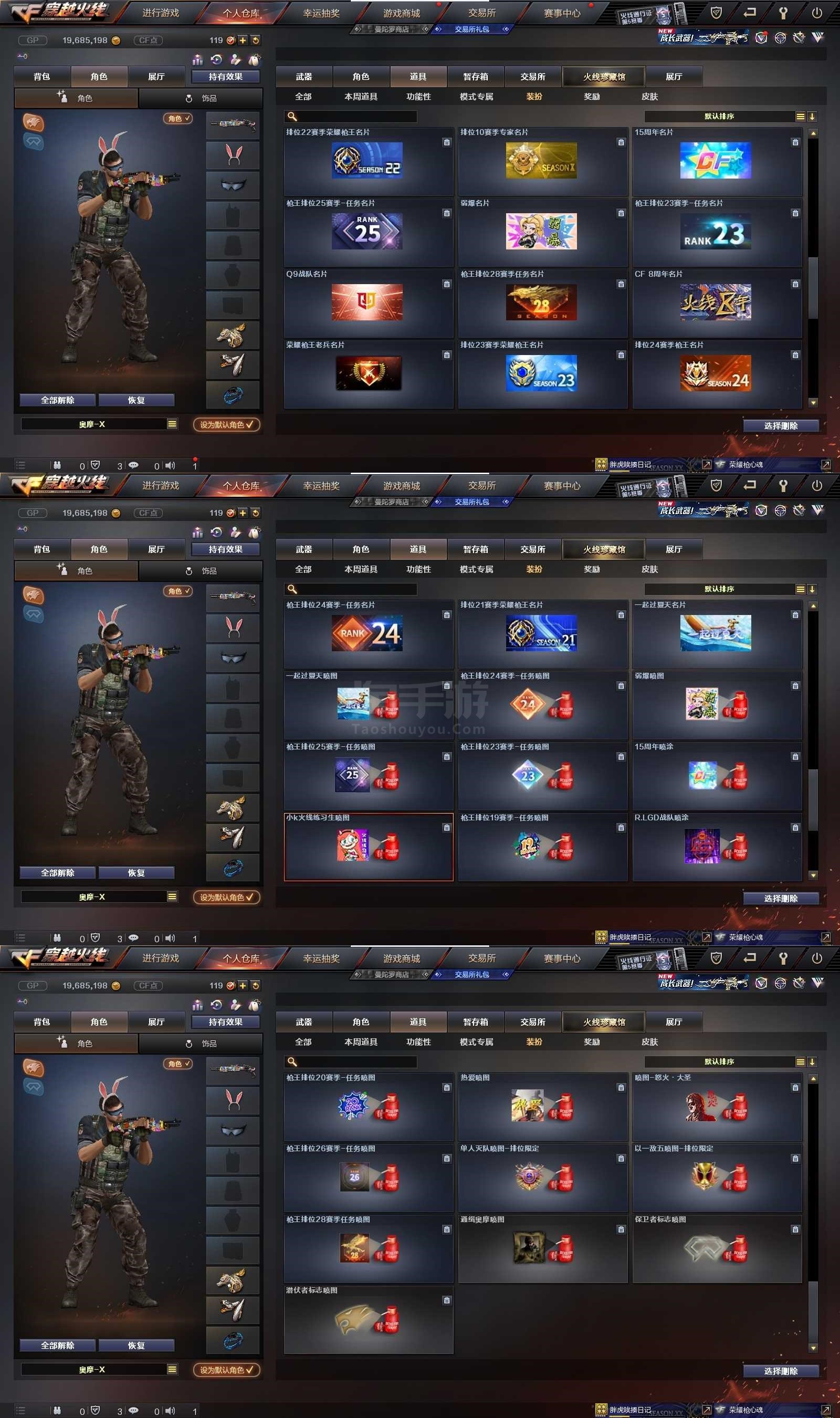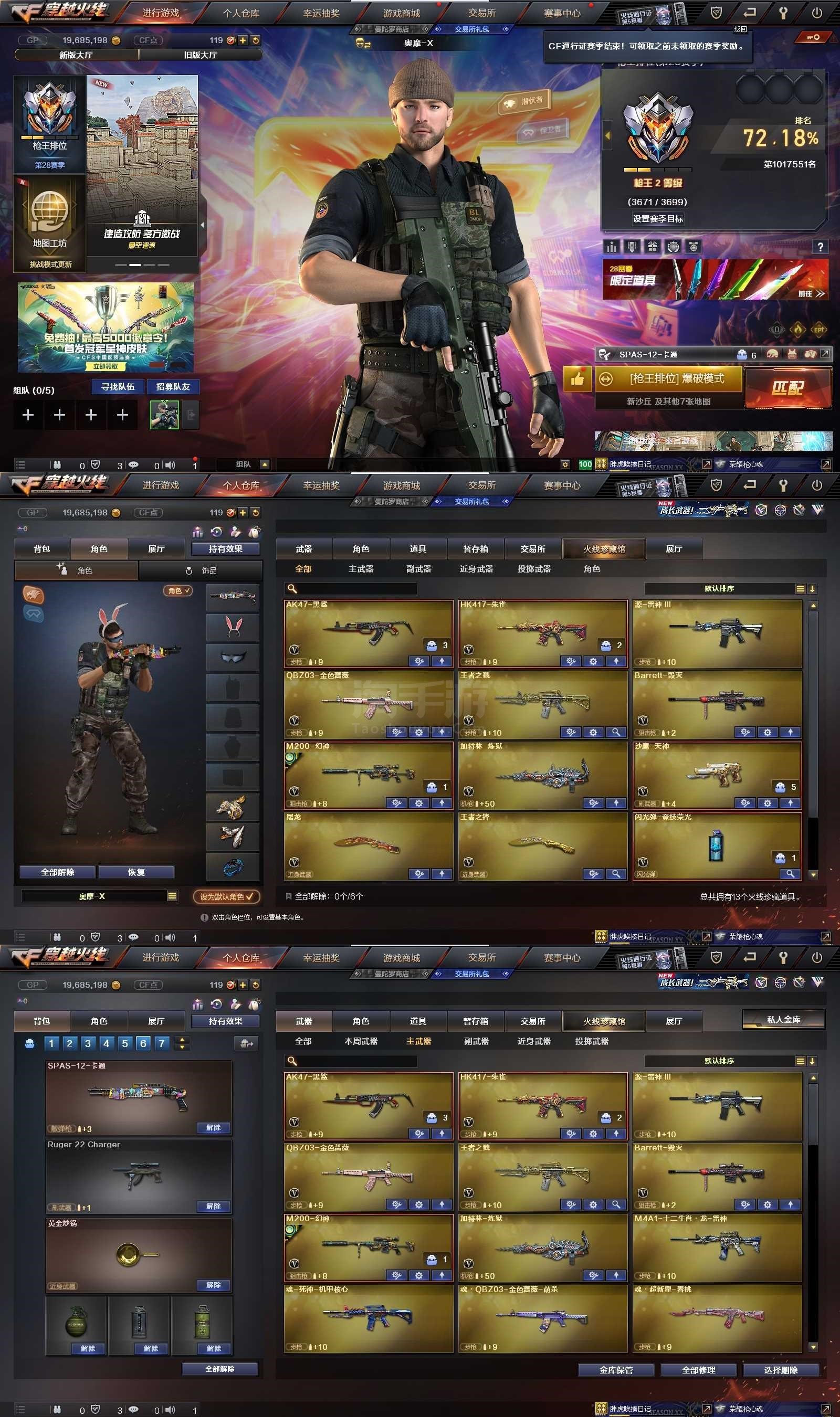 1358460_辽宁/北部/实名可改/13V2王者2炫金【主武器类型】 M200-幻神 (青鹤) HK417-朱雀 Barrett-毁灭 QBZ03-金色蔷薇 王者之戮觉醒版 AK47-黑鲨 加特林-炼狱 炫金毁灭 炫金千变 闪光弹竞技荣光 烟雾弹竞技荣光 【王者武器】 【副武器类型】 沙鹰-天神 Cfcolt1911大黄蜂 【近身武器类型】 王者之锋觉醒版 屠龙 荣耀之证 迷你深渊冰龙 【稀有角