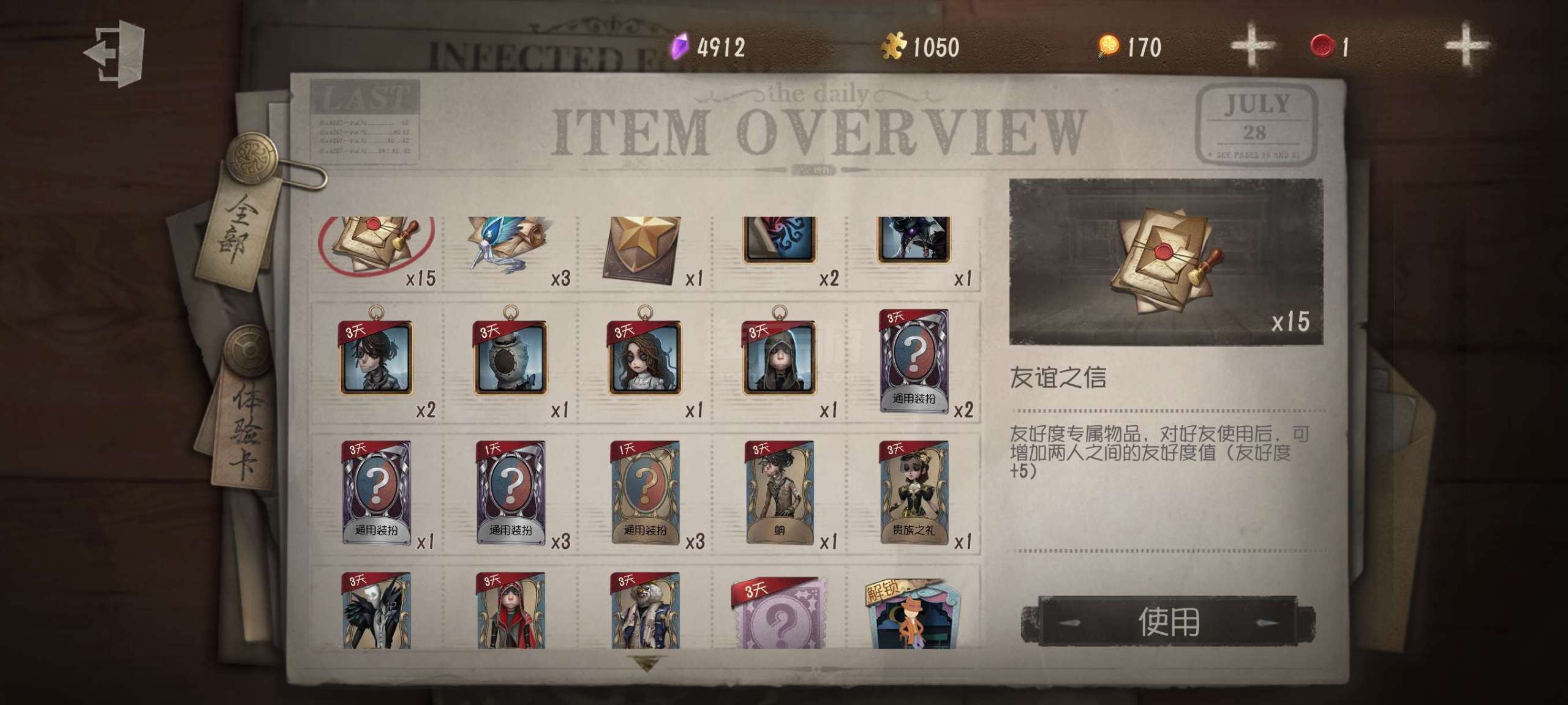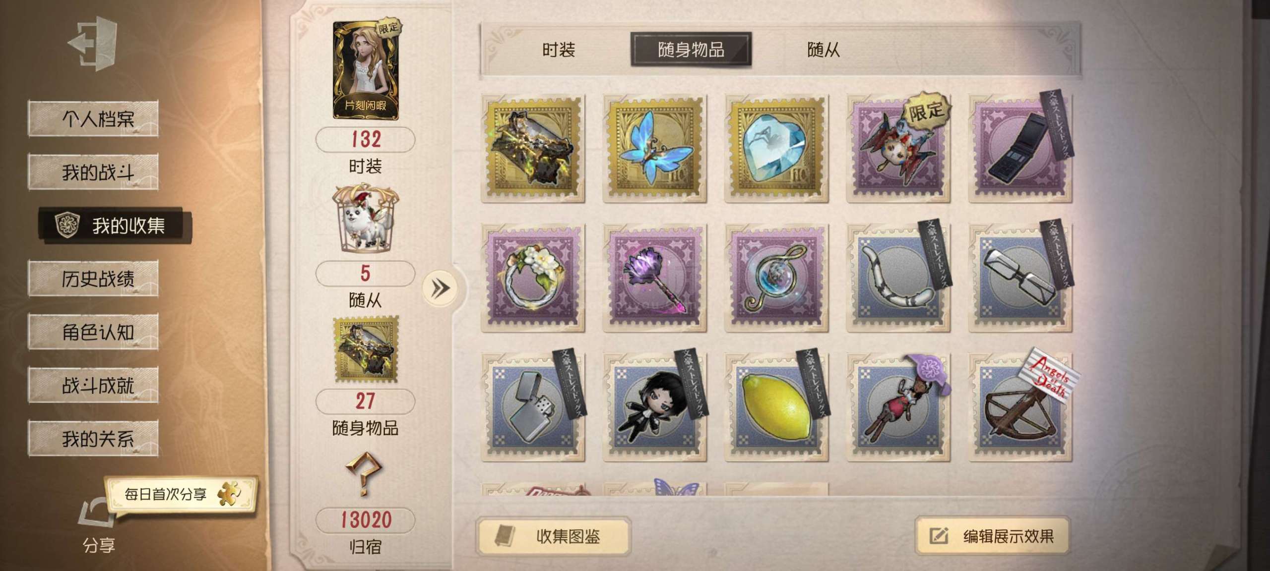 随身物品数量: