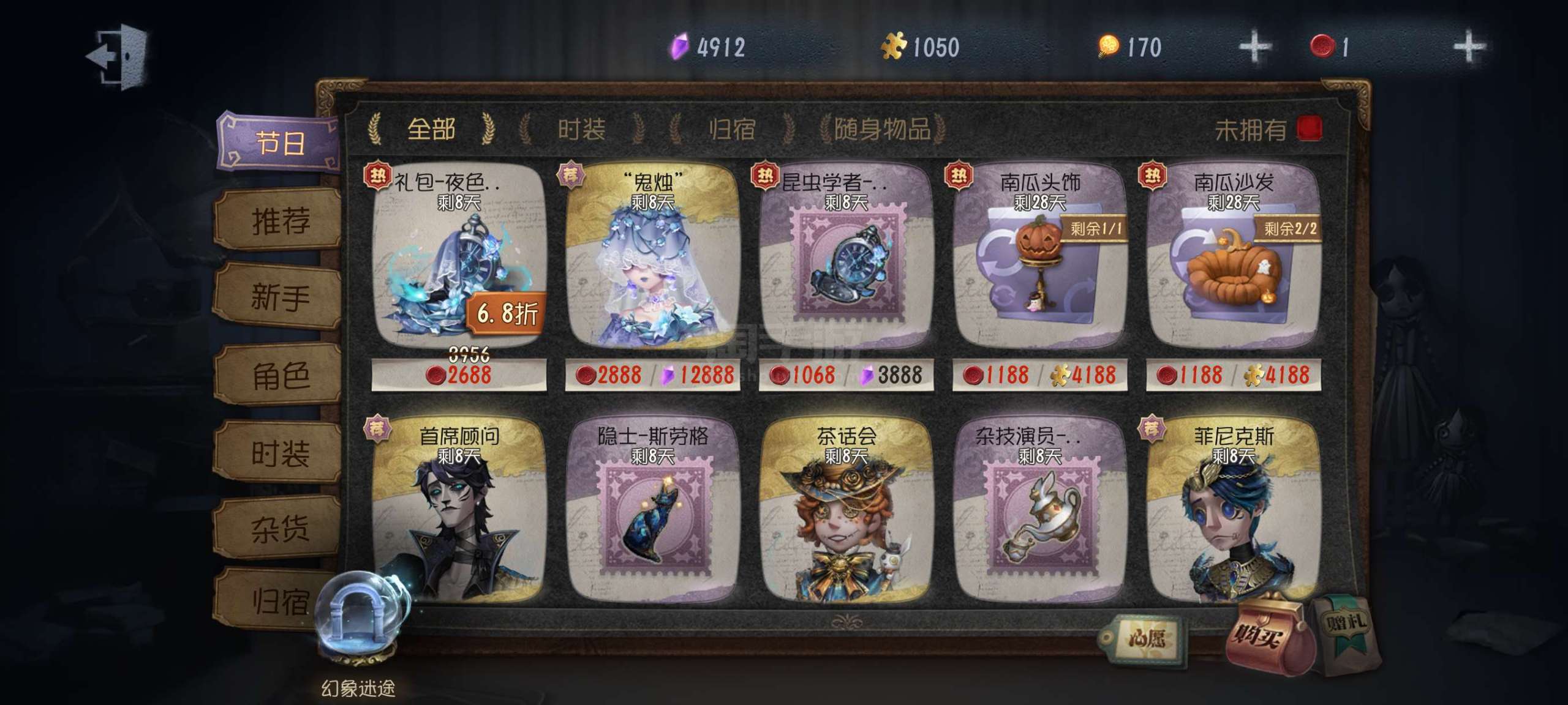 第五人格【安卓官方】双字id,先知四月一日君寻,很多紫皮,囚徒天海兰太郎,手机紫挂,三金挂,限定紫挂乾坤袋,一堆超值紫挂