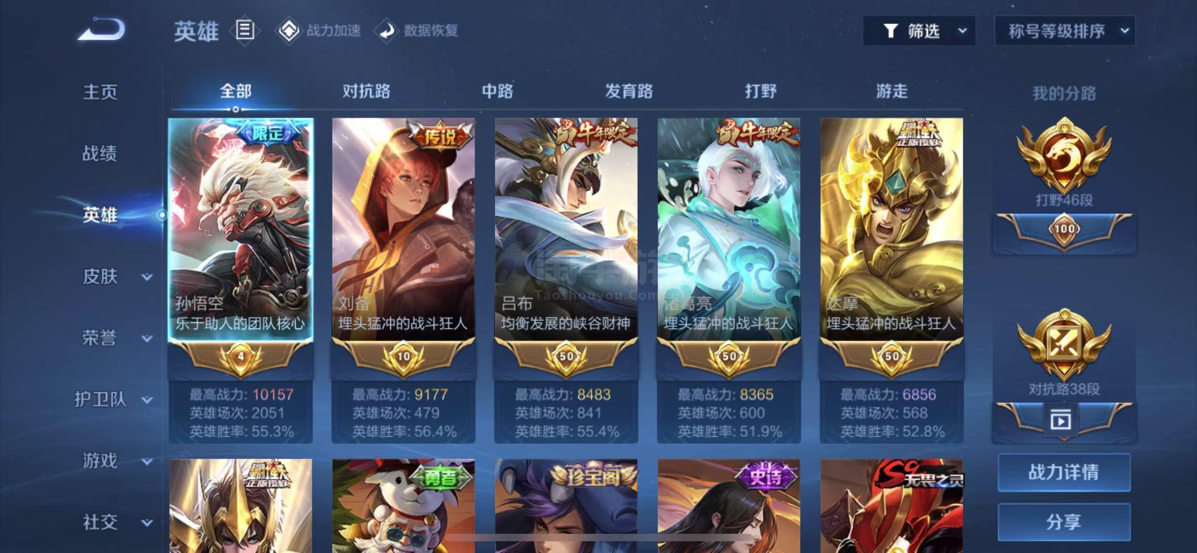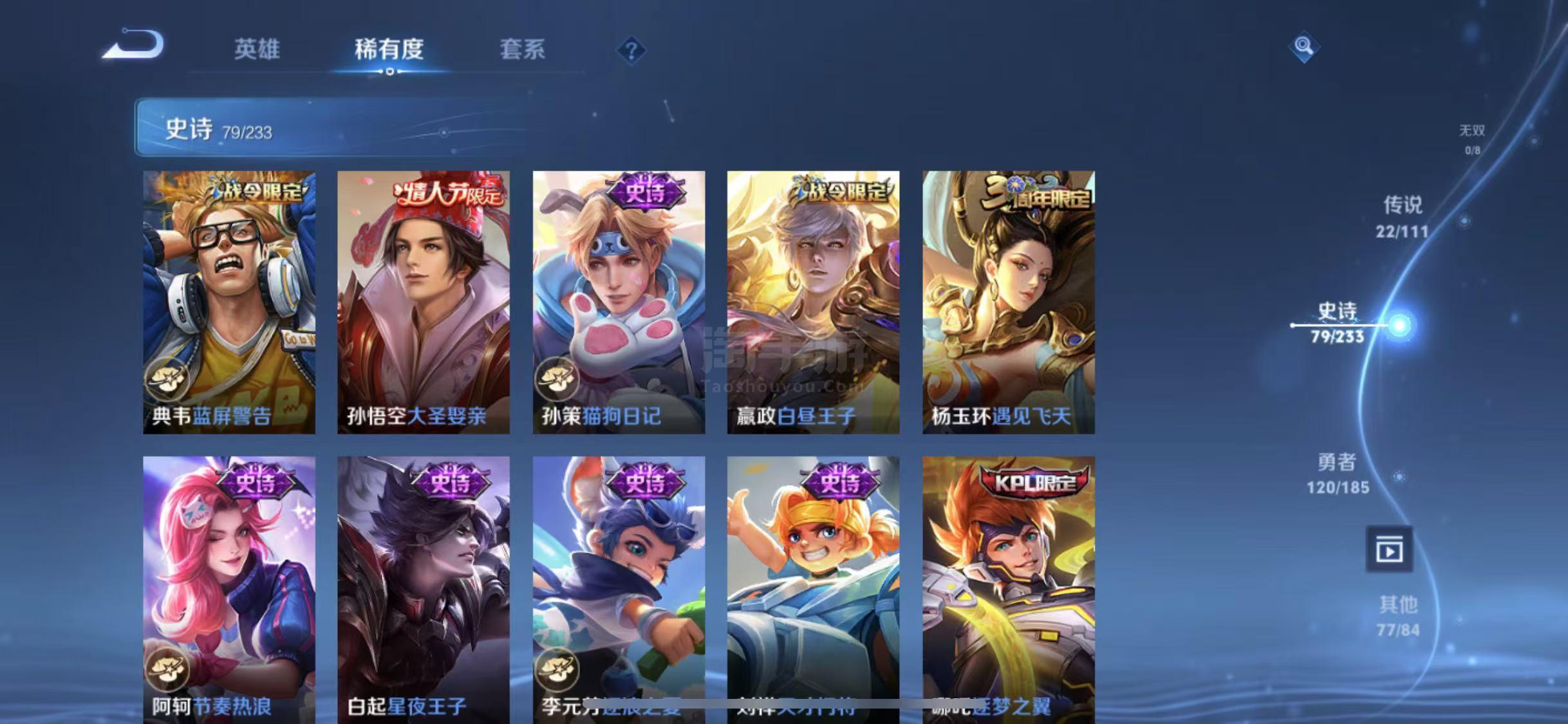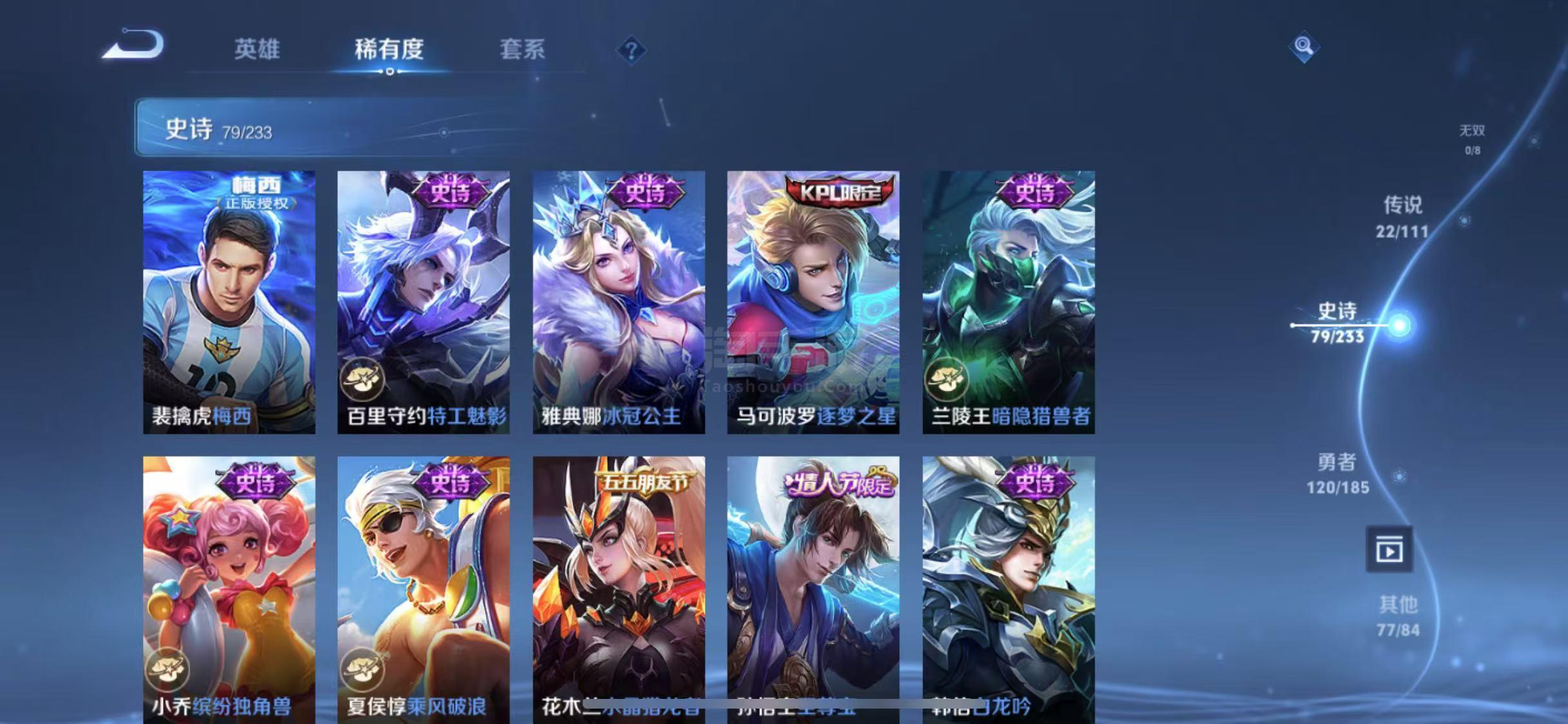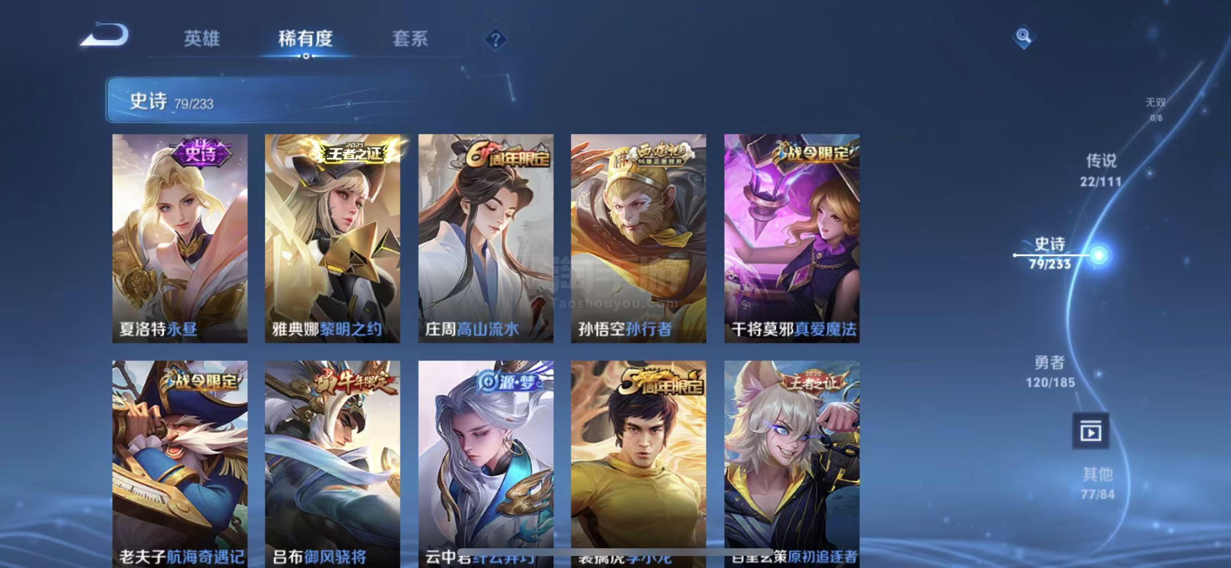【传说皮肤】 百里玄策-白虎志 达摩-黄金狮子座 典韦-战鼓燎原 宫本武藏-地狱之眼 后羿-黄金射手座 镜-炽阳神光 吕布-怒海麟威 刘备-时之恋人 李信-一念神魔 吕布-曦玄引 裴擒虎-寅虎·赤拳 孙悟空-地狱火 孙悟空-