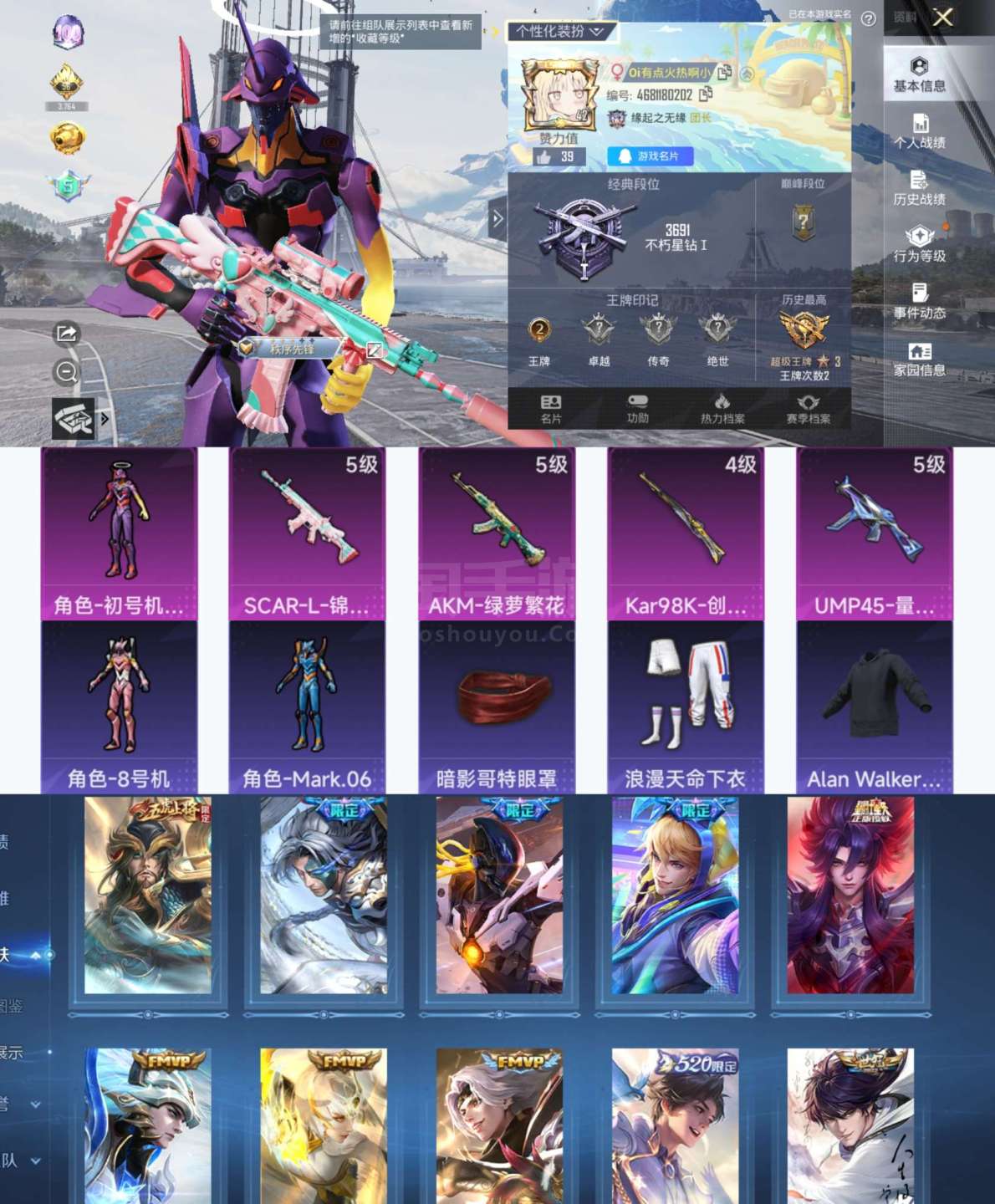 安卓QQ 王者一体号1粉4特觉醒初号机螳螂浪漫天命暗影哥特 王者17传说至尊宝