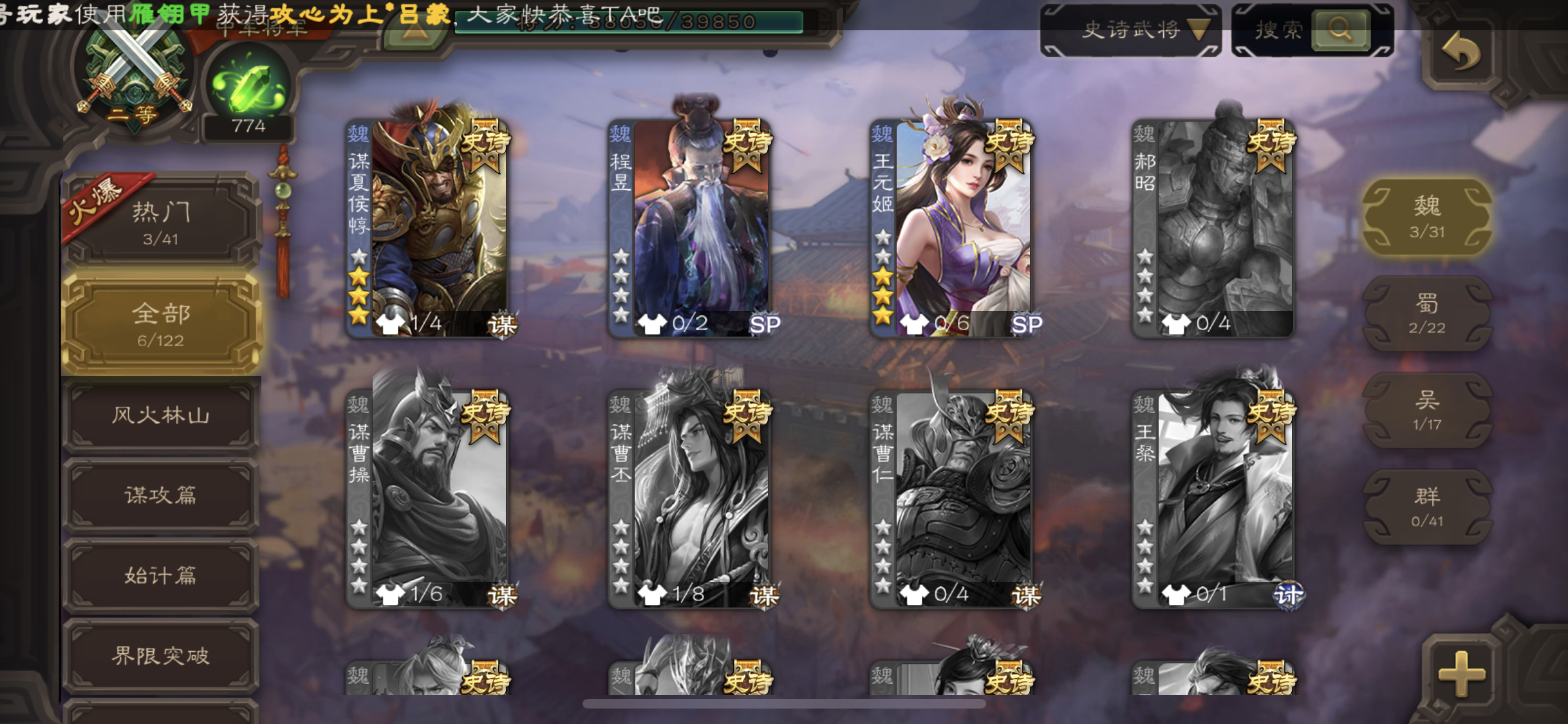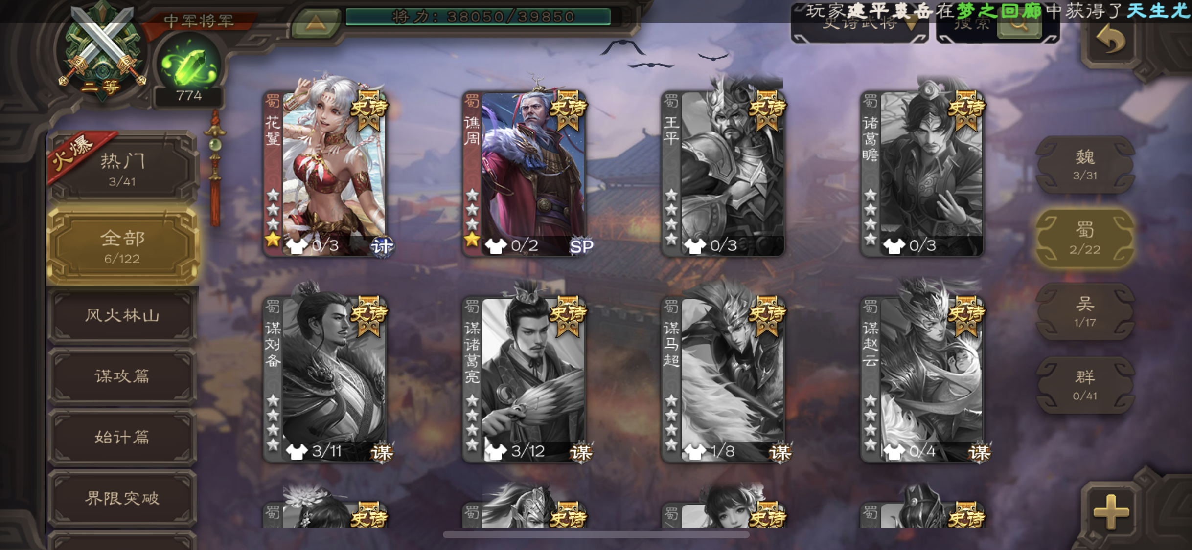 三国杀【苹果官方】官方账号,可换绑。2等中军,11史诗皮肤,6史诗武将
