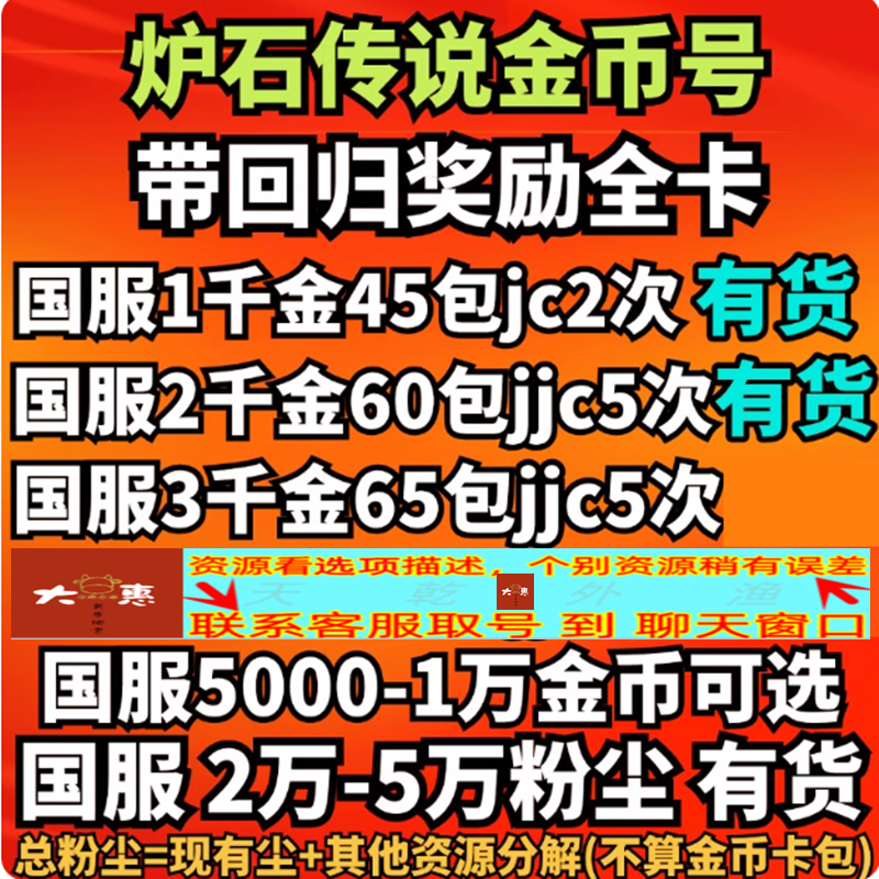 ♦国服/国服♦3000-5000金币♦40-100包(竞技场2次)+100橙+97金橙+回归奖励♦无法改资料