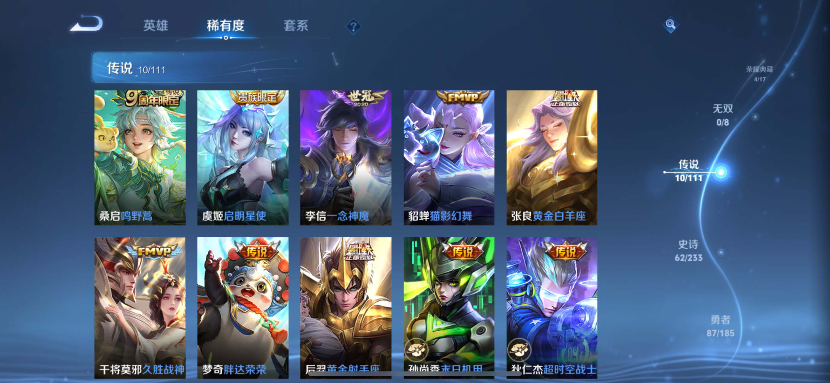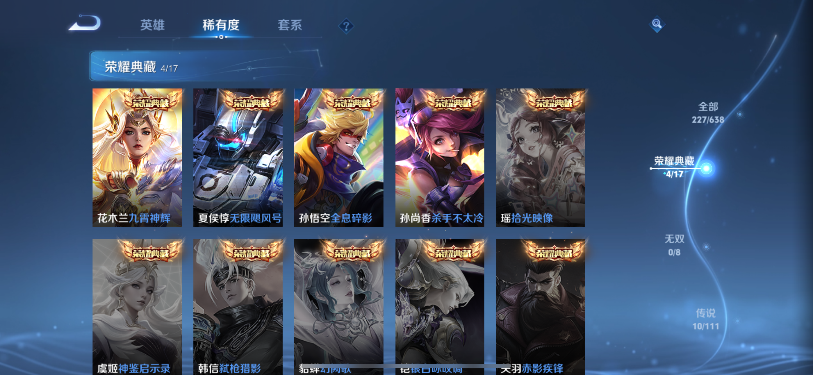 四典藏皮肤加武则天。五典藏。贵9差3块钱