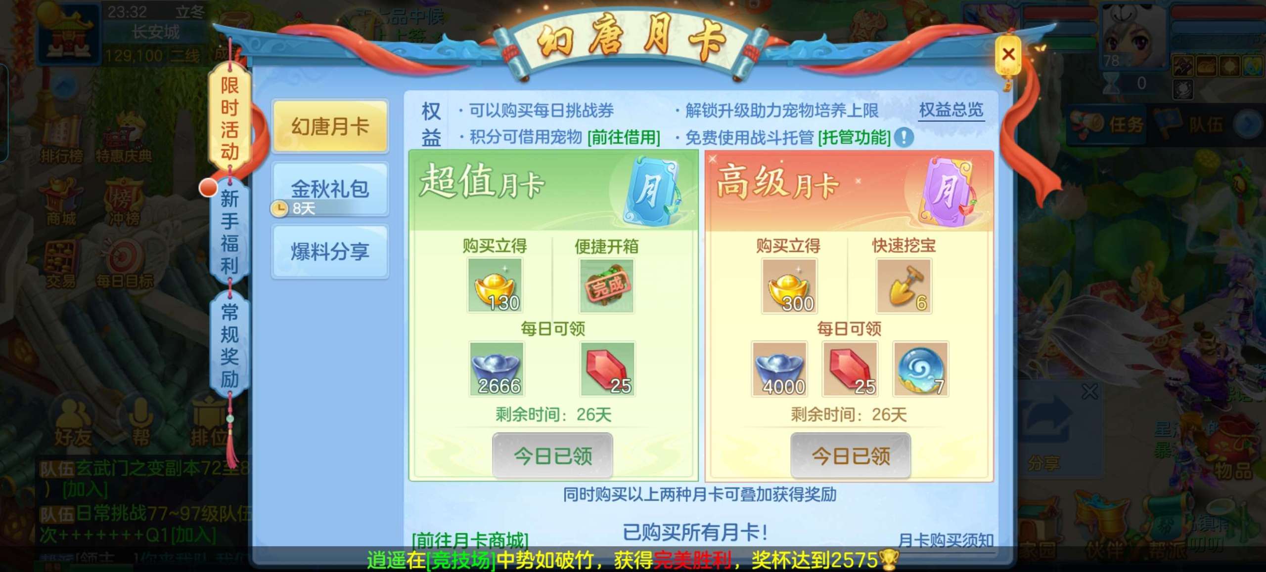 定山海红心六技能老虎月卡基金已开,礼包全在