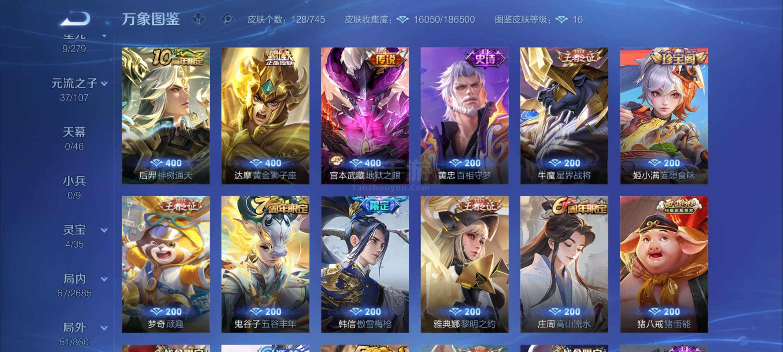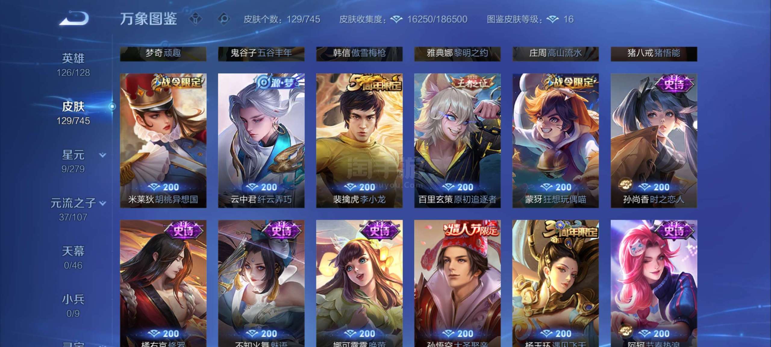 安卓QQ-3传说-129皮肤-126英雄-至尊星耀-幽冥之眼 傲雪梅枪 大圣娶亲 时之恋人 修罗 1w1宫本 可砍