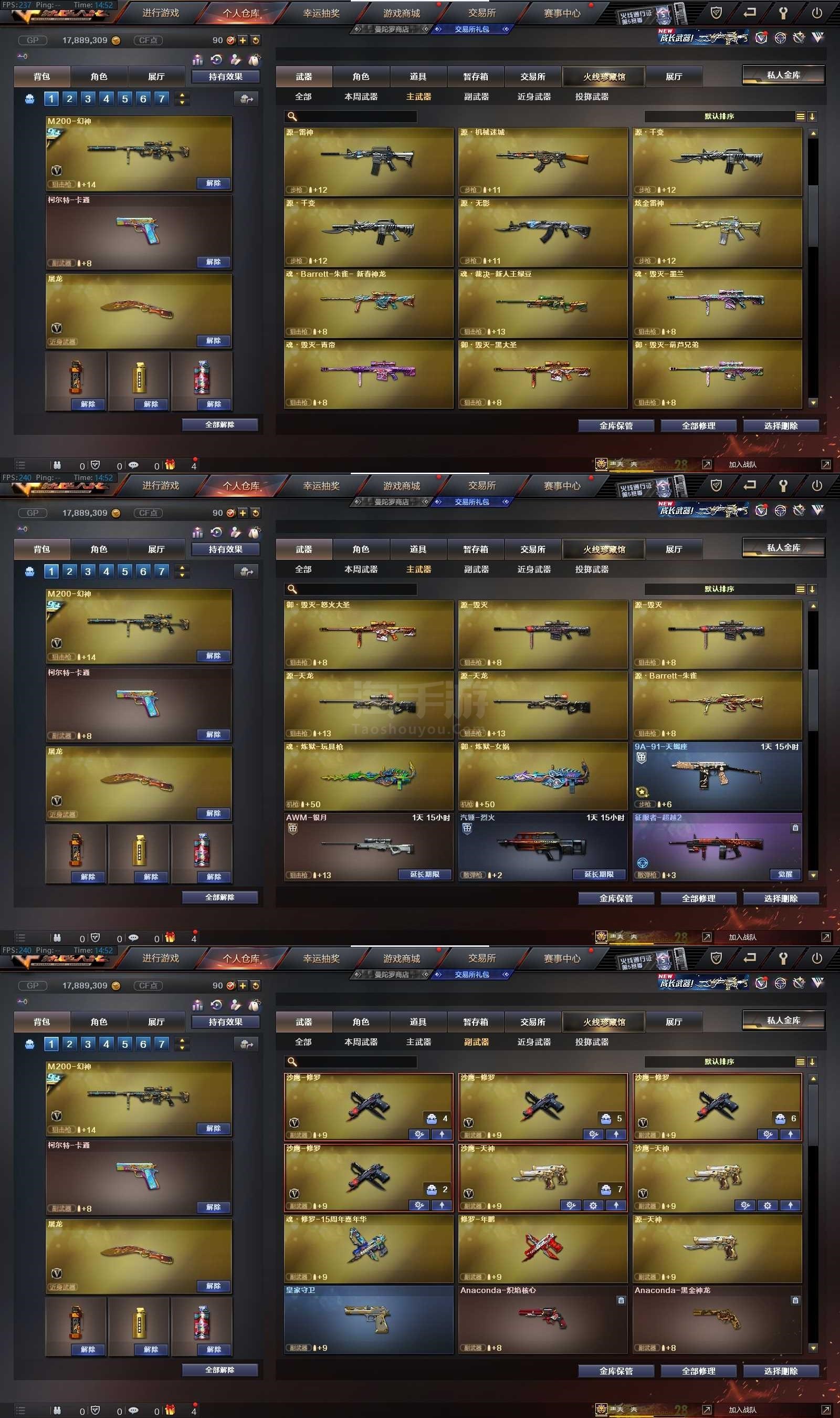 1403735_山东/北部/实名可改/33V7王者1炫金【主武器类型】 M200-幻神 (冠军之幻+青鹤) Barrett-毁灭 (荣耀之魄+音效卡) Barrett-极光 AWM-裁决 M4A1-雷神 王者之武觉醒版 王者之势觉醒版 M4A1-千变 王者之戮觉醒版 M4A1-S神 M4A1-青龙 王者之心觉醒版 *2 AK47-火麒麟 无影神兵利器 AK47-黑鲨 AK12-天启 烈火-9A-9