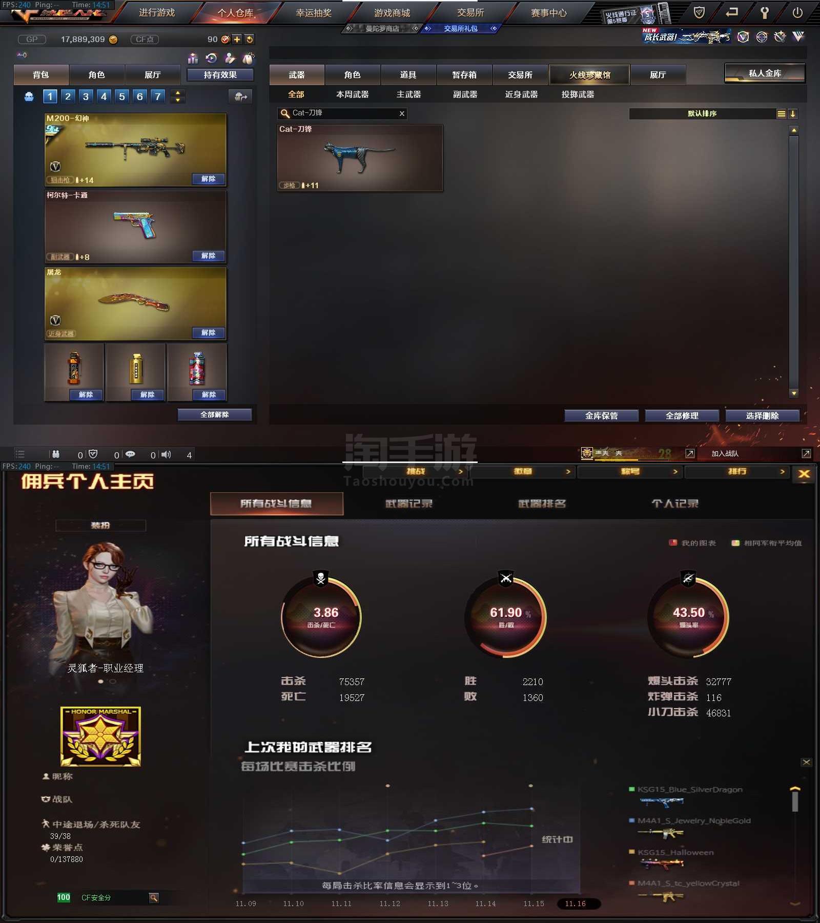穿越火线(CF)【端游】7王者武器 1炫金武器 33V武器 1V角色 5皮肤 可排位
