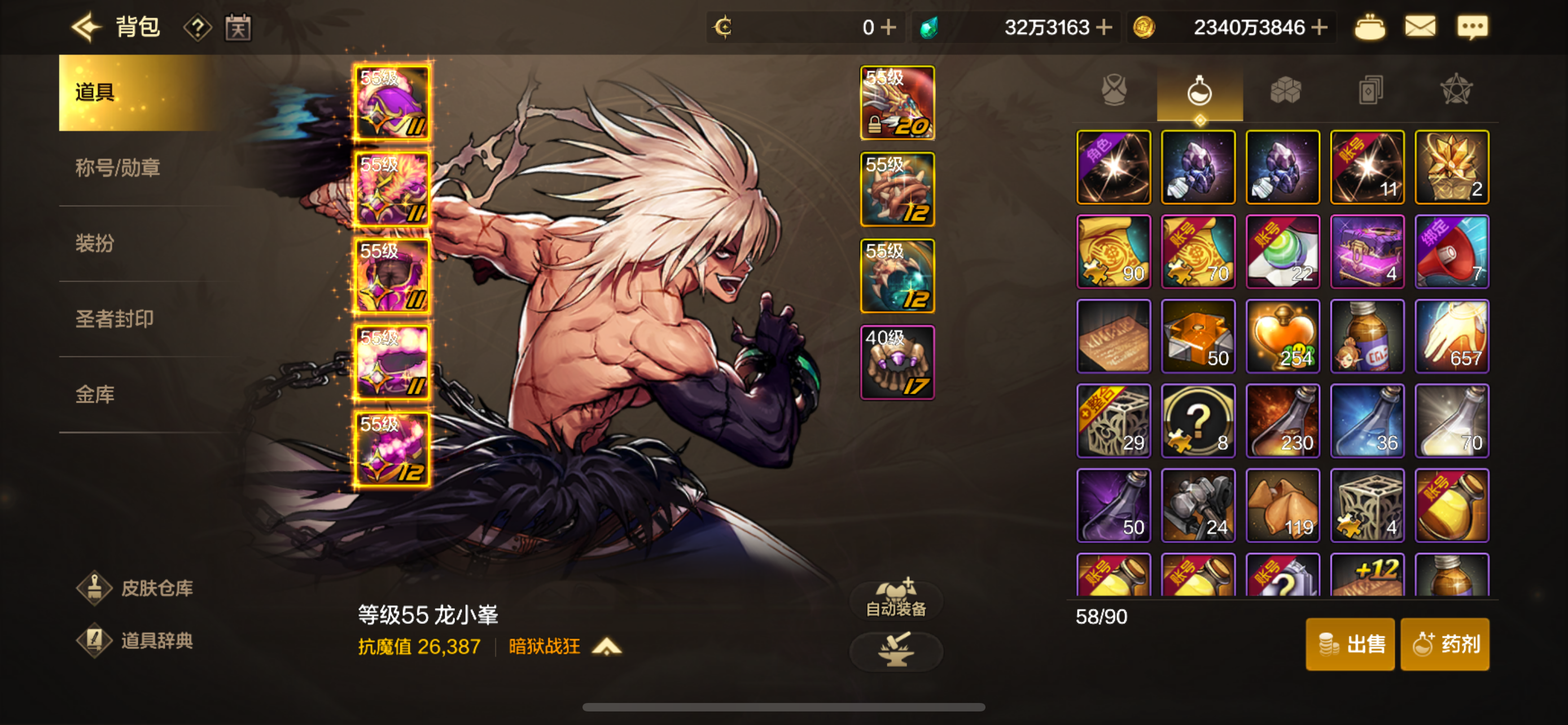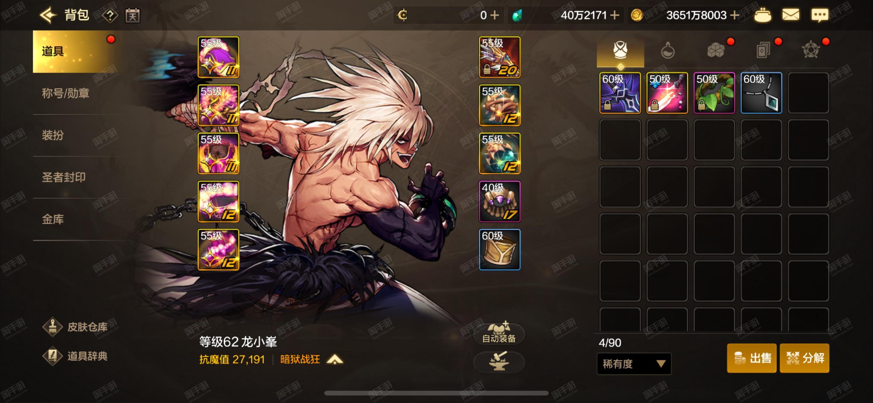 20神秘沧海武器,65版本继承不掉级,17骨戒,天空套,复古武器装扮,32万泰拉,材料特别多,500狗眼,2万多张深渊票,1万多的碳助力65版本快速提升战力。