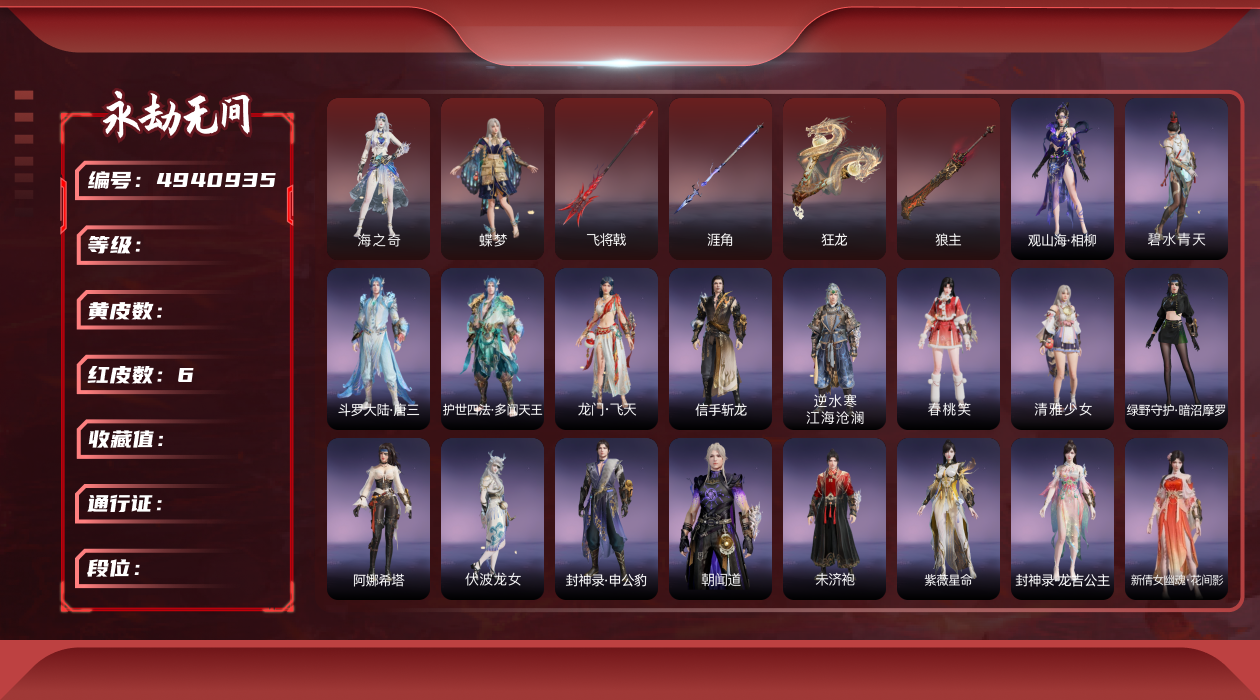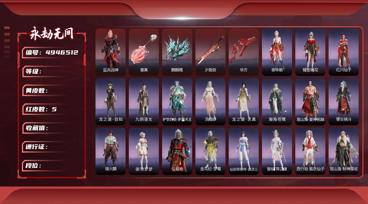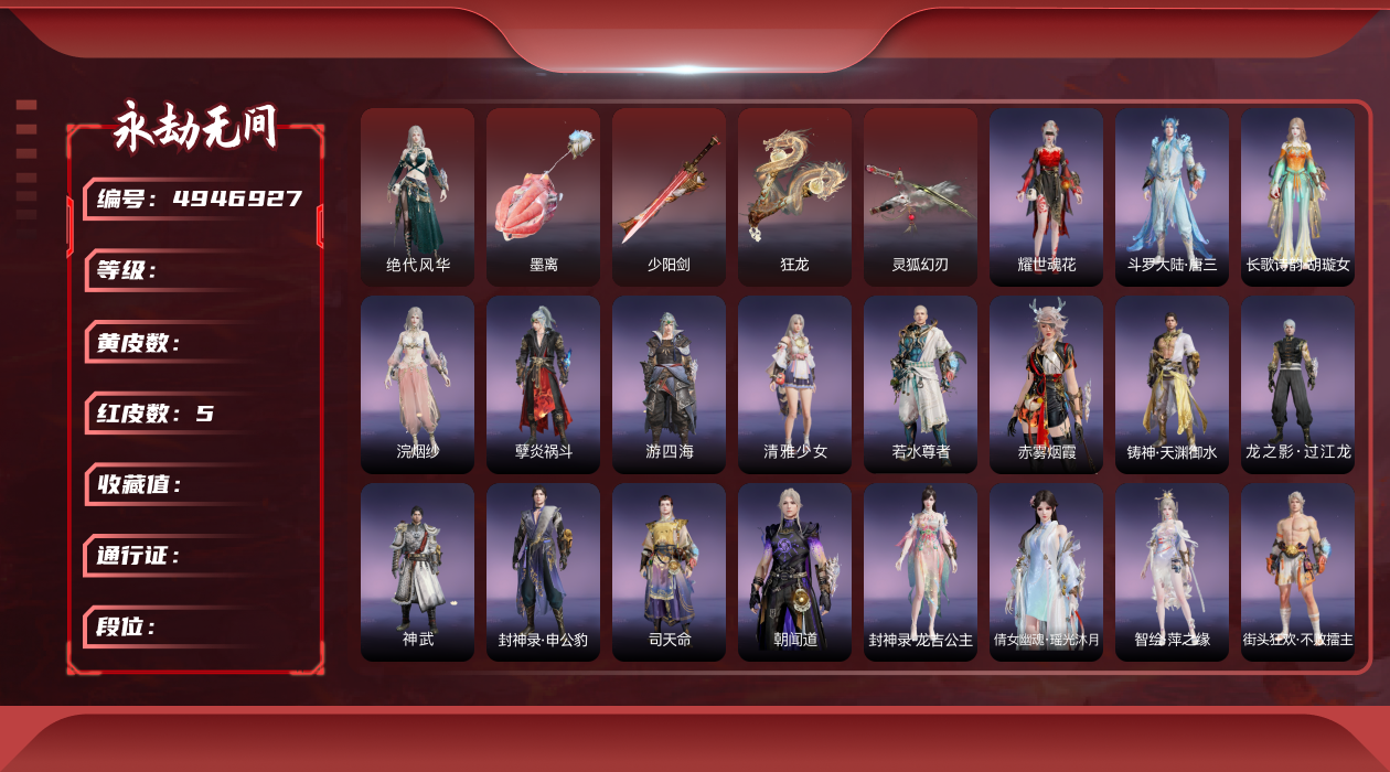 [4734580]金皮数量: 217 红皮数: 8 等级: 184 幻丝数: 27297 版本: 标