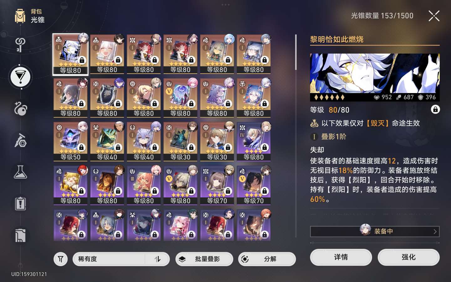 崩铁欧皇账号70级号一命黄泉加专武,砂金加专武小保底星期日然后12抽出专武太欧了,白厄瑕蝶加专武等等