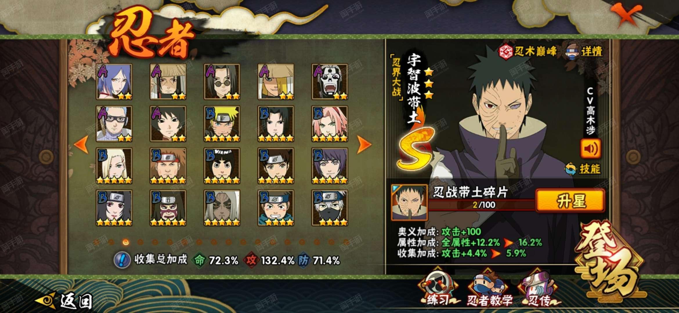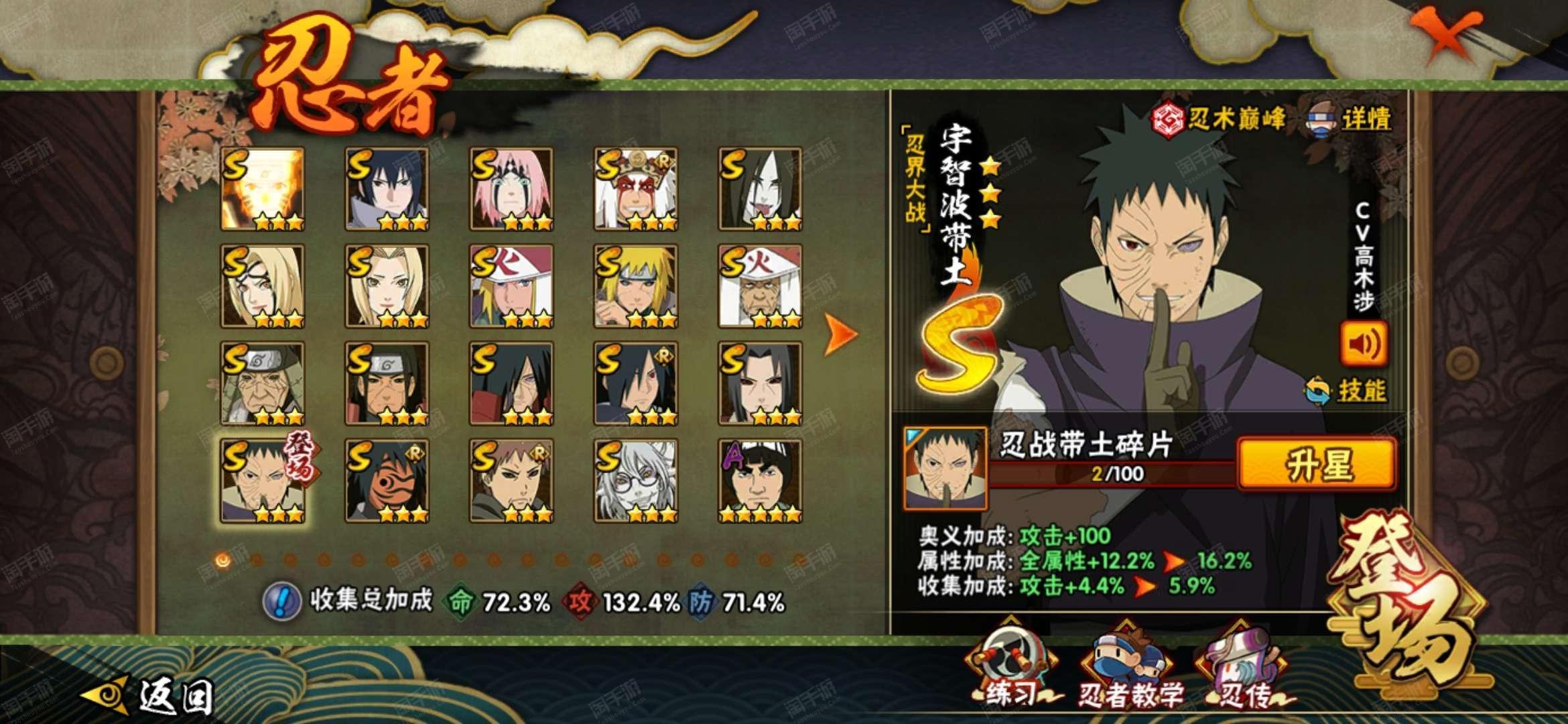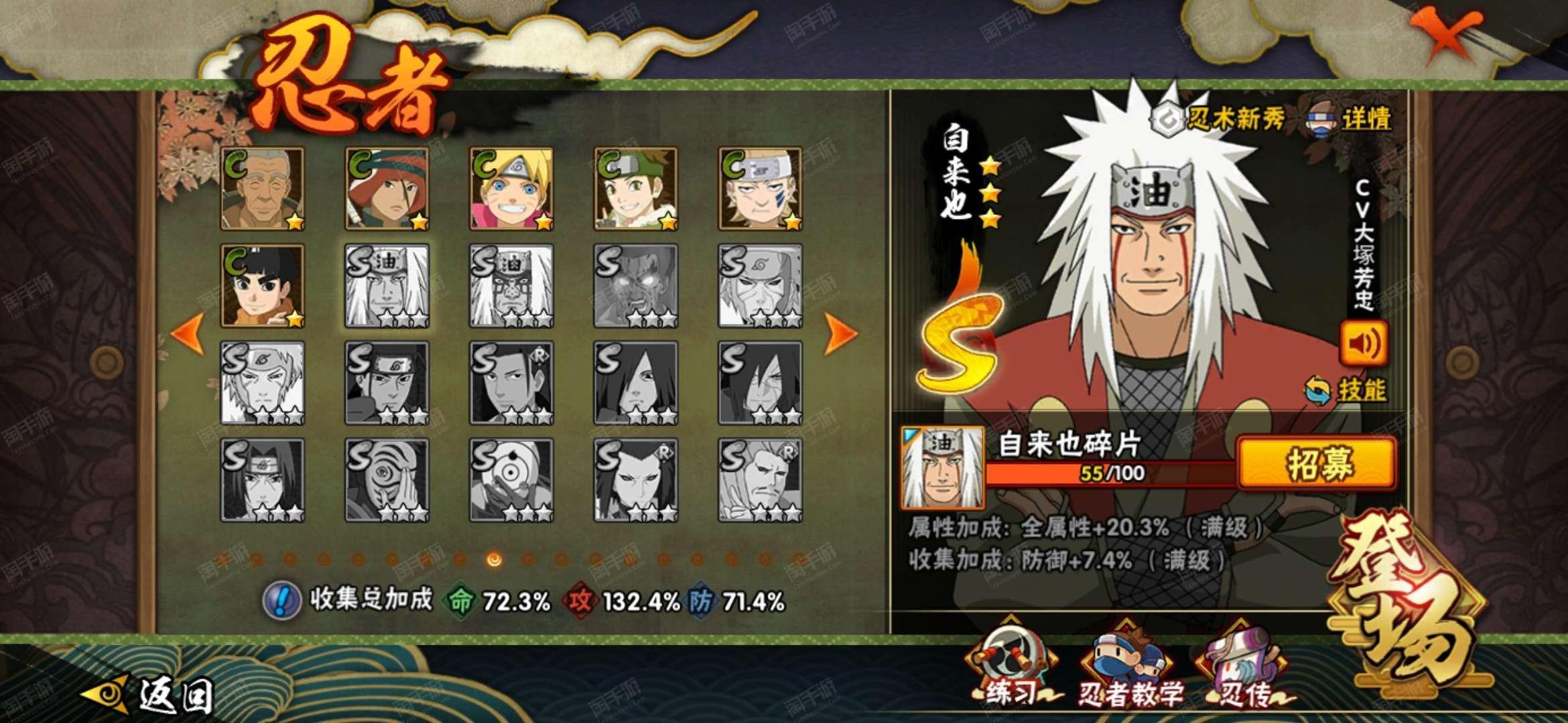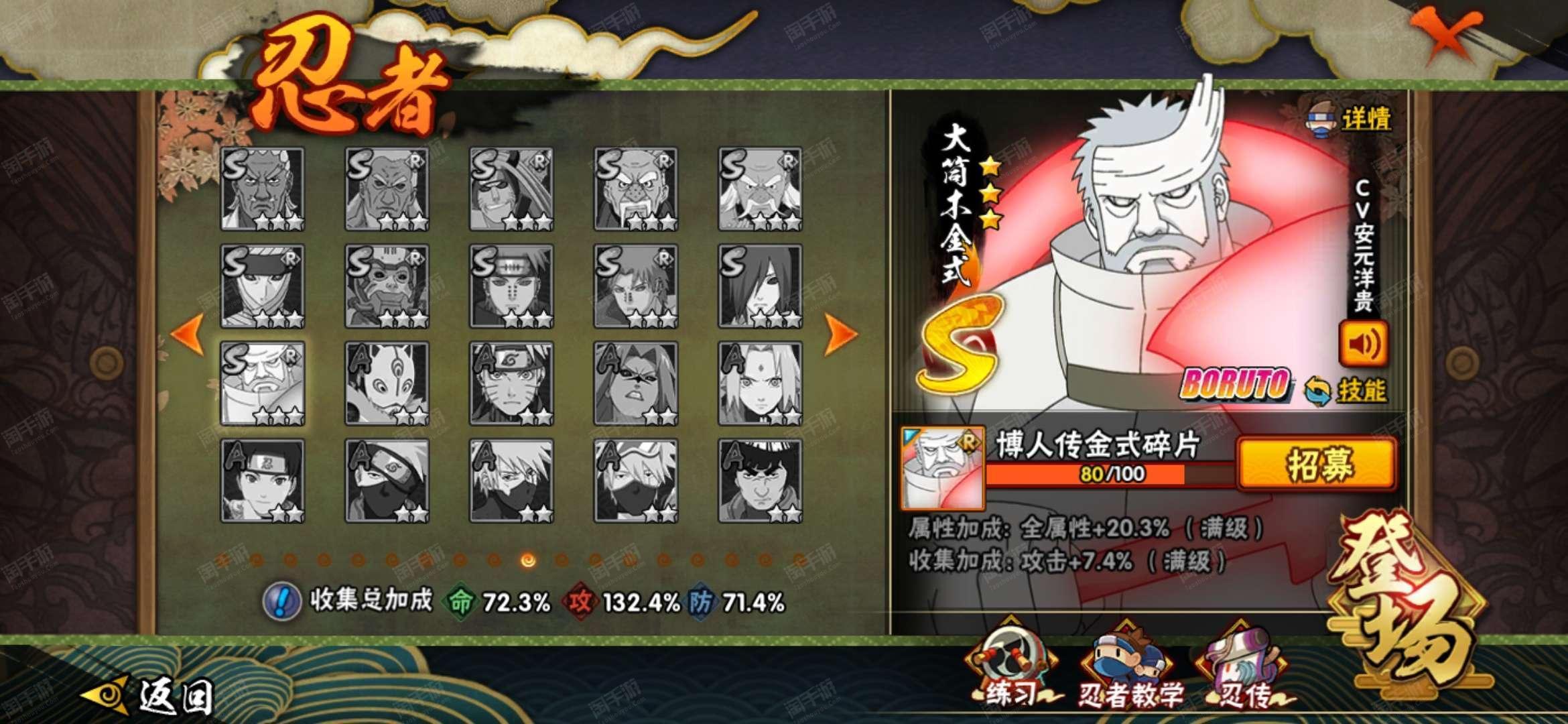 漩涡鸣人 「九喇嘛连结」(3星漩涡鸣人 「九喇嘛连结」) 宇智波佐助「永恒万花筒」(3星宇智波佐助「永恒万花筒」) 自来也 「舞之豪杰」(3星自来也 「舞之豪杰」) 大蛇丸(3星大蛇丸) 纲手(3星纲手) 波风水门(3星波风水门) 波风水门「秽土转生」(3星波风水门「秽土转生」) 猿飞日斩(3星猿飞日斩) 宇智波斑「秽土转生·解」(3星宇智波斑「秽土转生·解」) 千手柱间「秽土