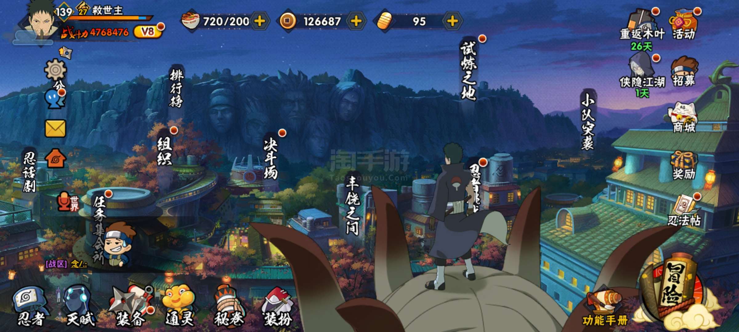 火影忍者【安卓QQ】v8 准13忍 20A忍470W战力忍战带土白面具永恒佐助秽土斑解斑黄猿创立柱间药师兜百战水门便宜卖
