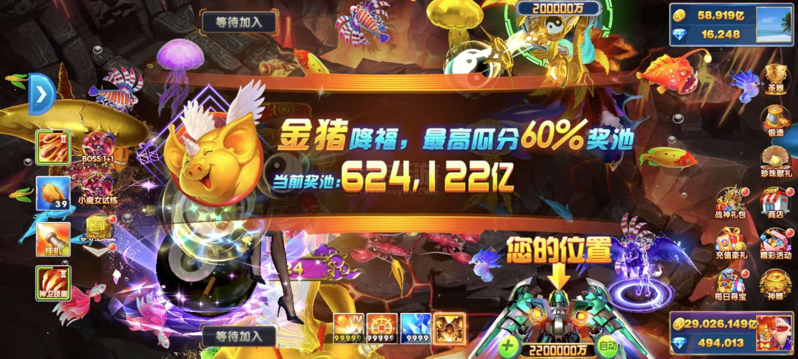 捕鱼大作战顶级14套 送2000w金币!商人和屠龙刀别来问!充值加成1420