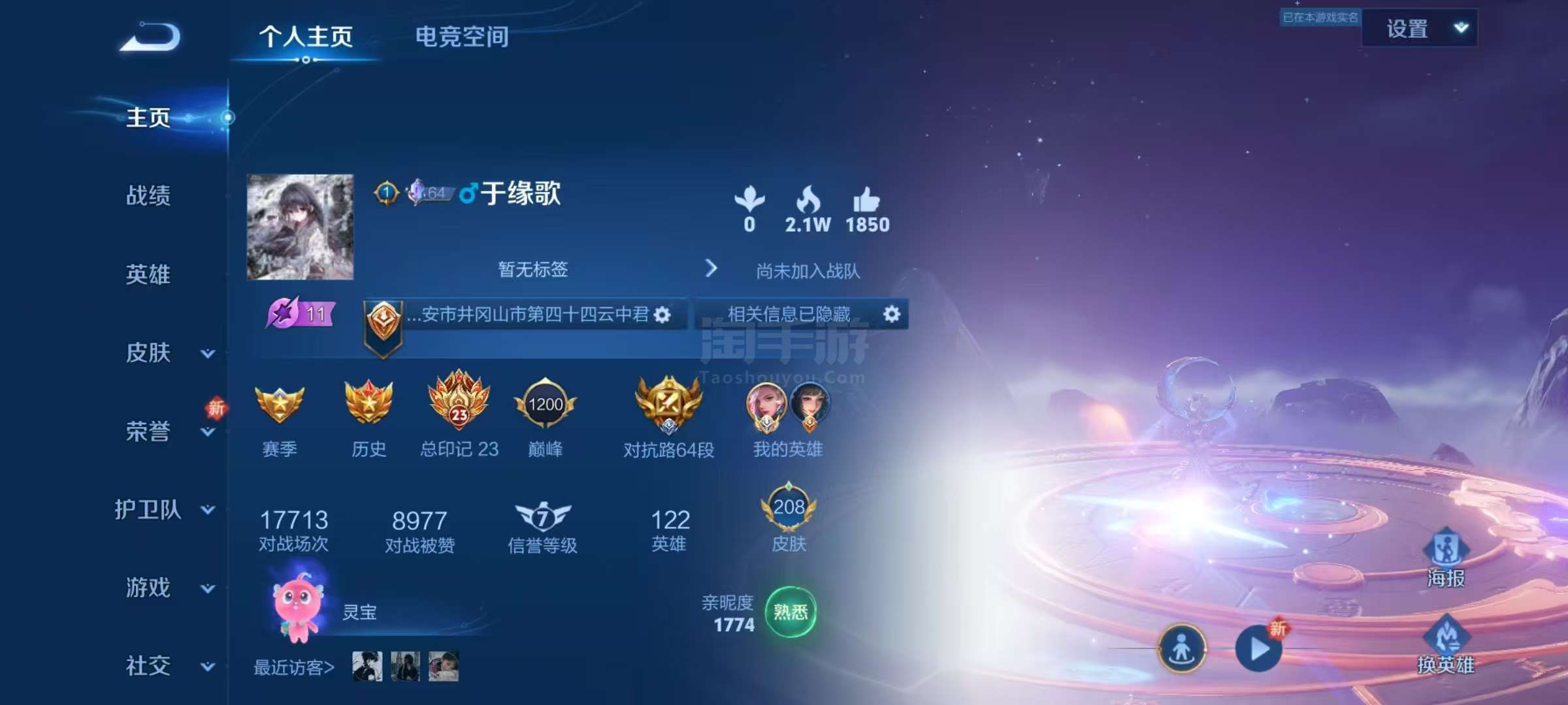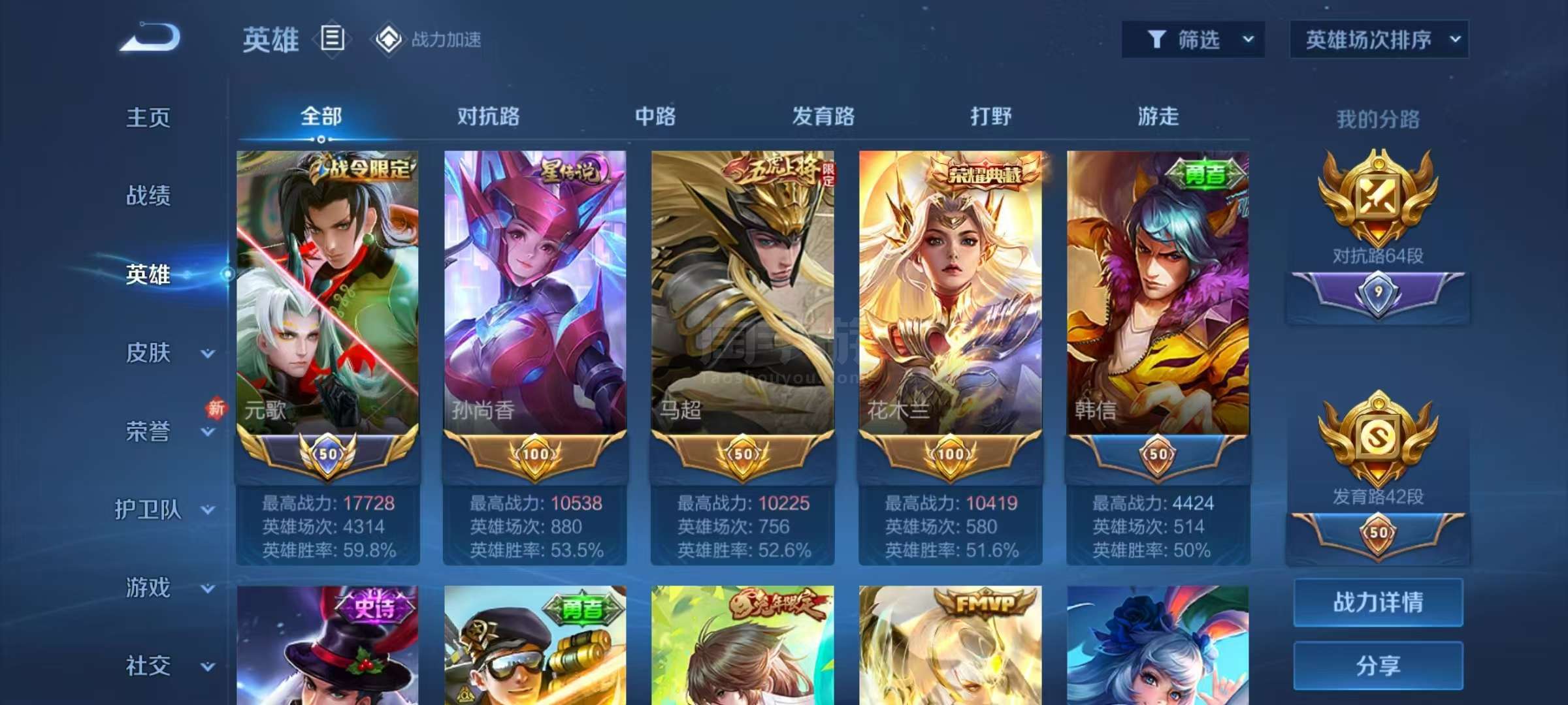 王者荣耀【安卓QQ】正式服百星印记/4k场近一万八小国元歌/万战省标/孙尚香马超木兰