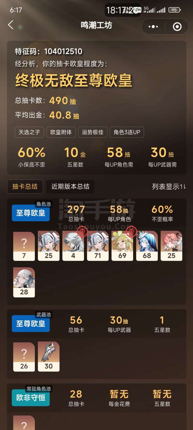 鸣潮龙凤蝶椿相0+1 1命椿。低探索 相里要0+1 今汐长离守岸人欧皇号