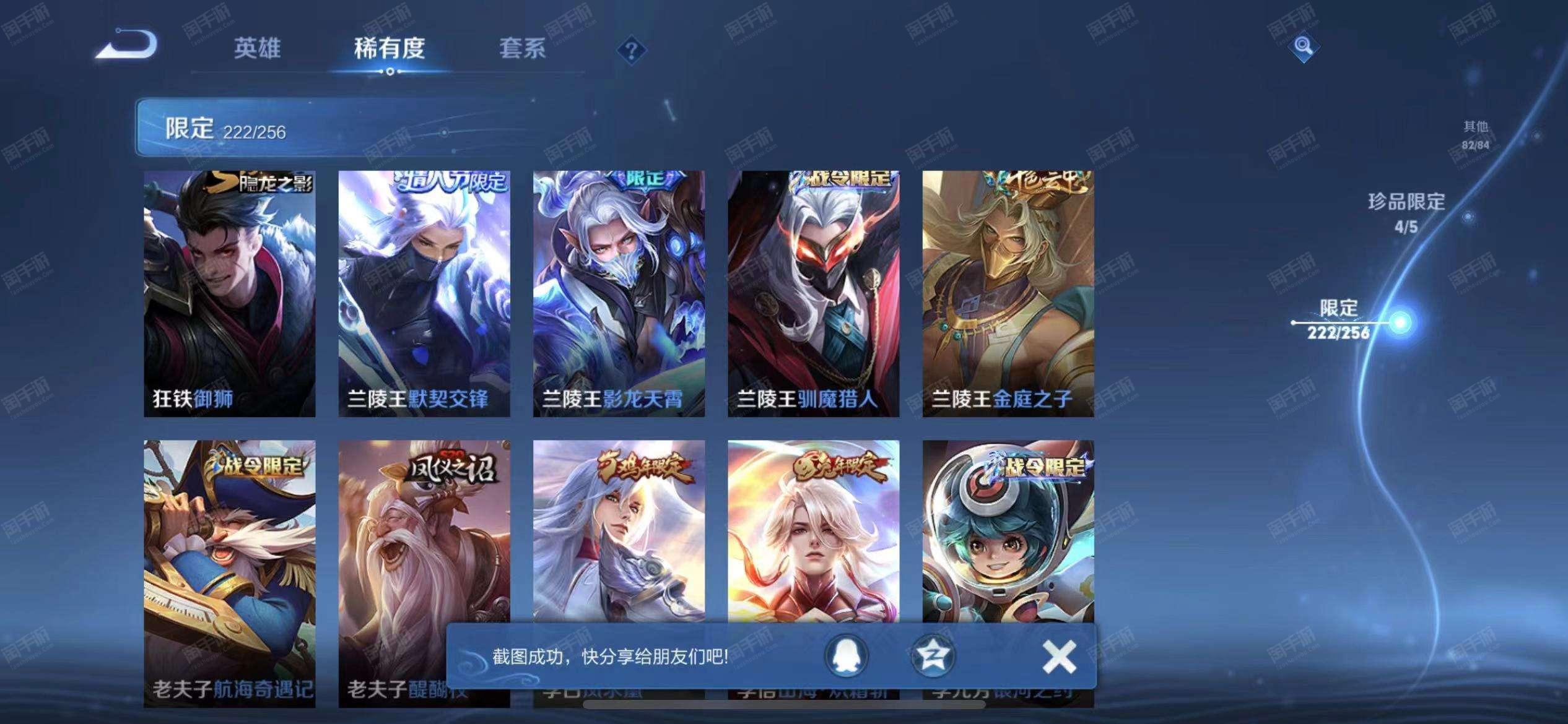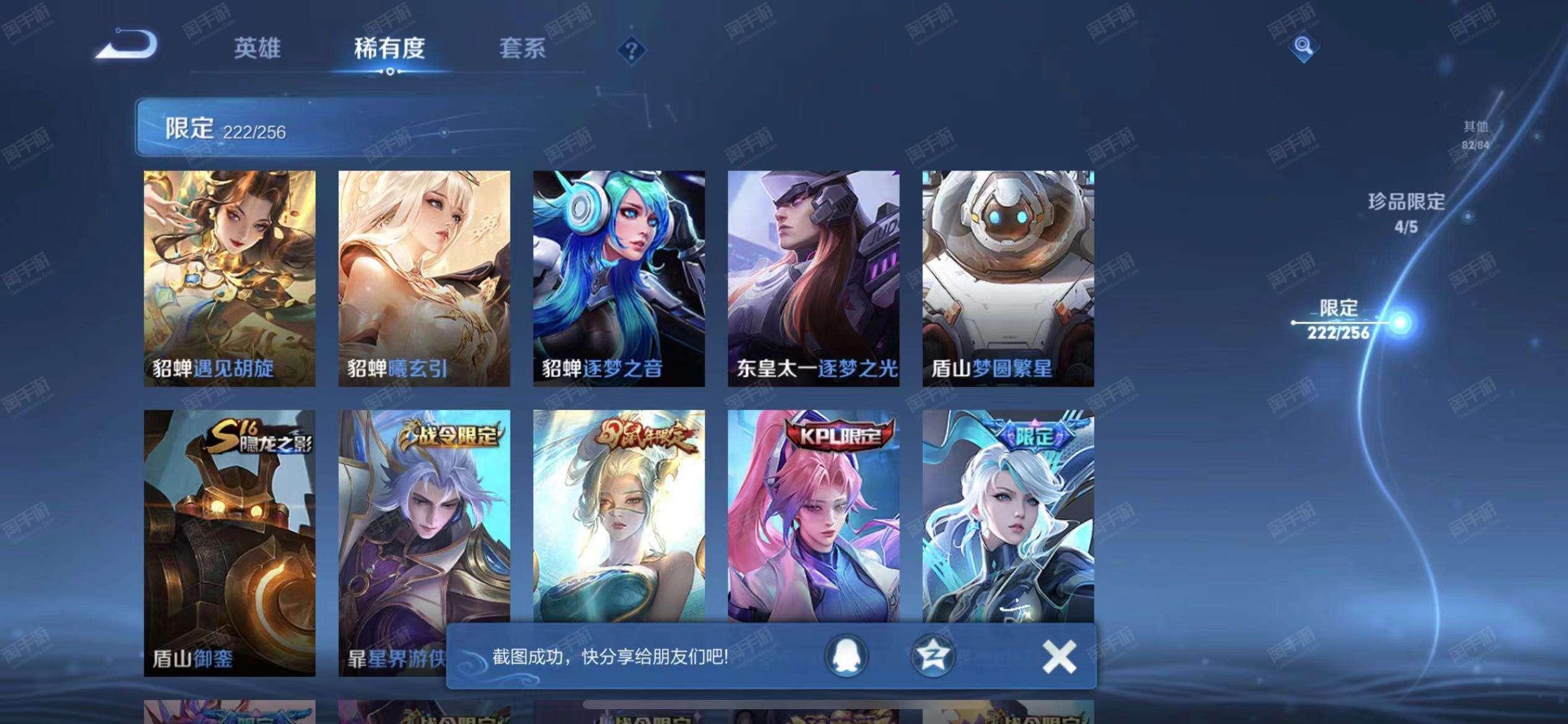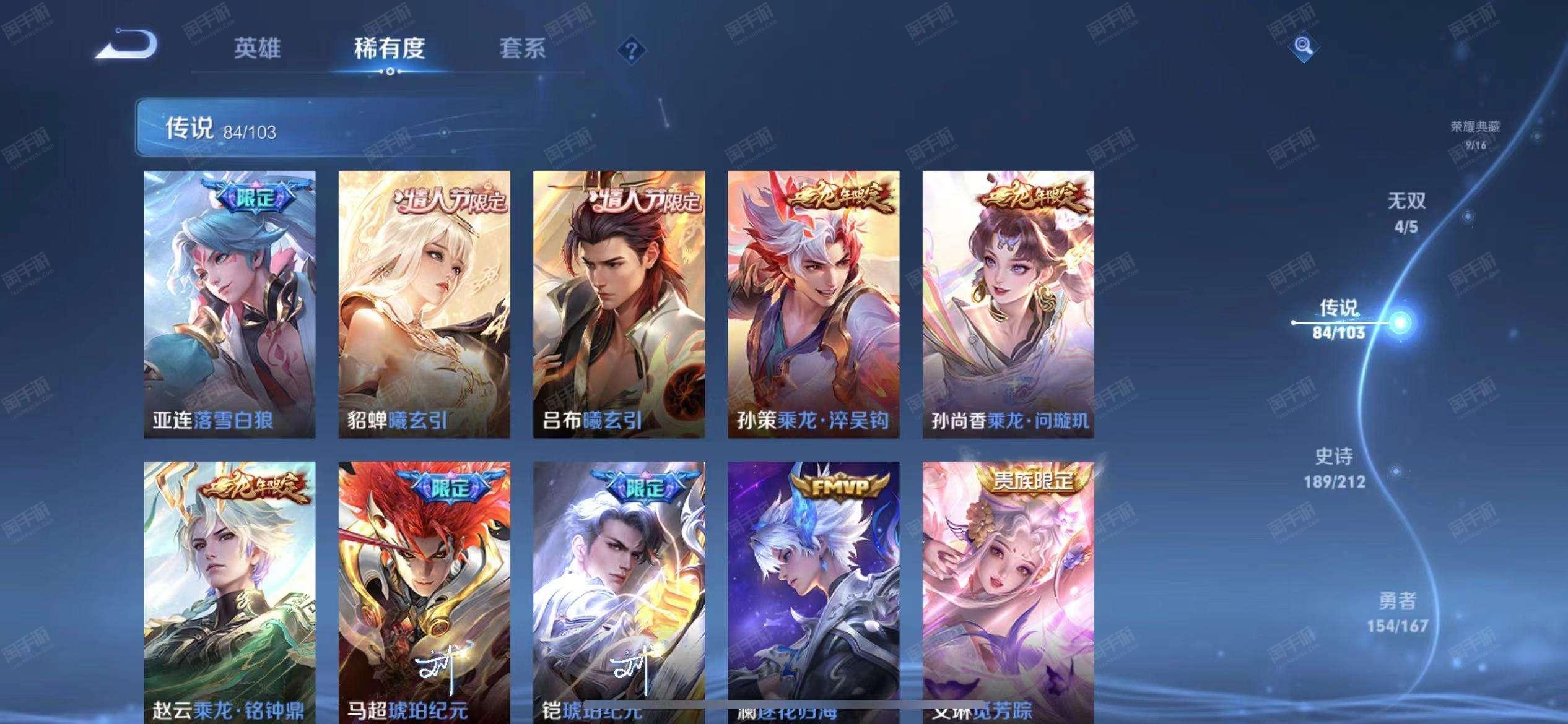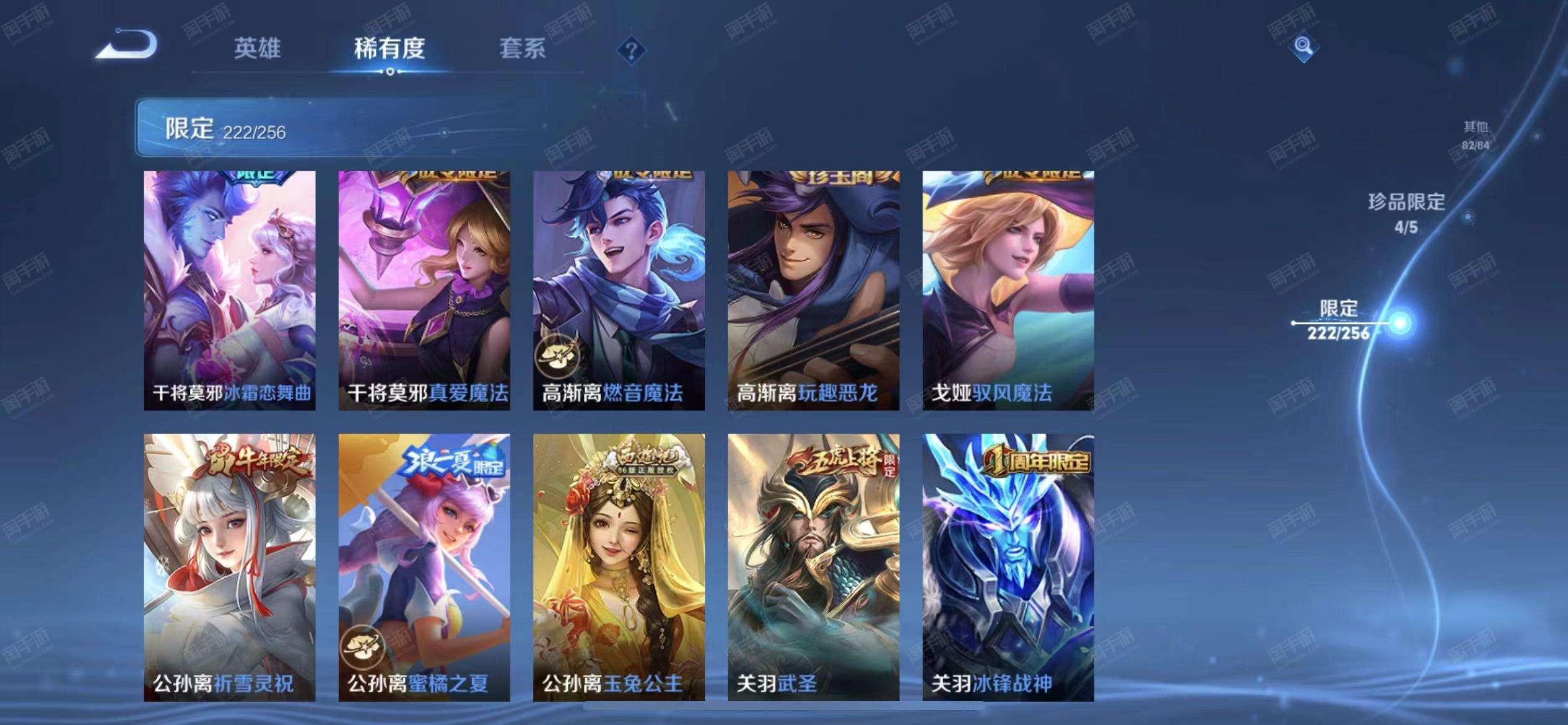 【荣耀典藏】 关羽-赤影疾锋 花木兰-九霄神辉 韩信-弑枪猎影 李白-鸣剑·曳影 芈月-大秦宣太后 武则天-倪克斯神谕 夏侯惇-无限飓风号 小乔-天鹅之梦 虞姬-神鉴启示录