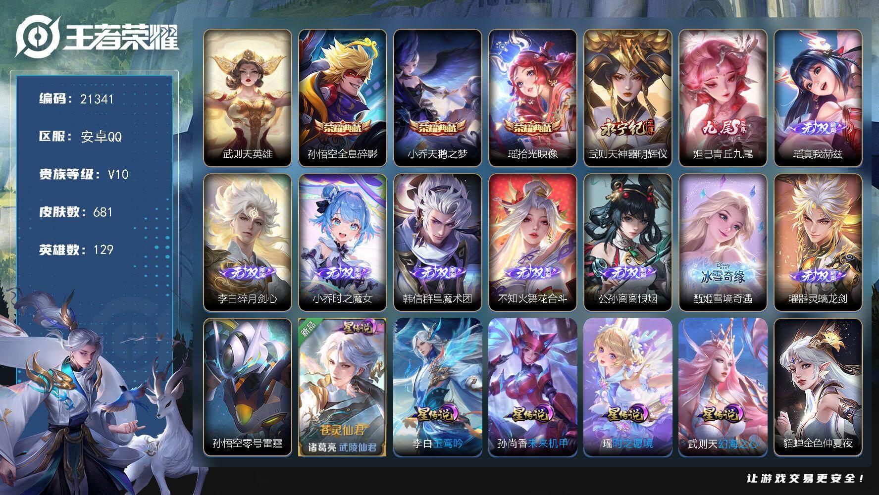 营地账号:378319752/苹果Q-V10-526皮肤-119英雄