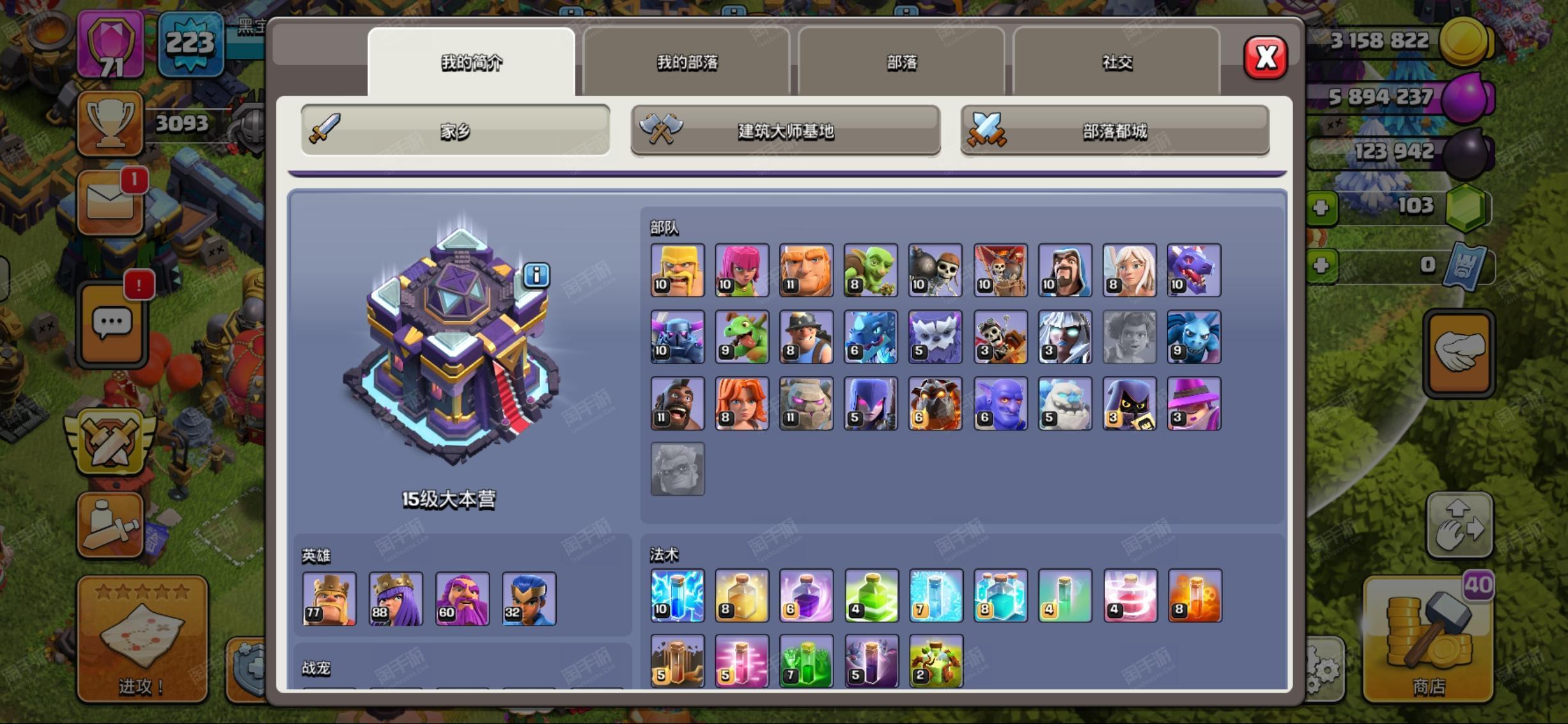 部落冲突【苹果QQ】安卓/苹果/互通QQ区15本四王等级77 88 60 32 冰天雪地 皇家