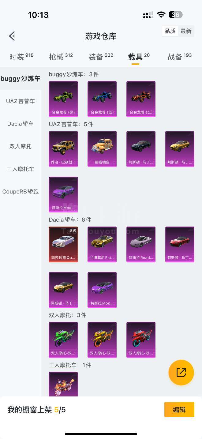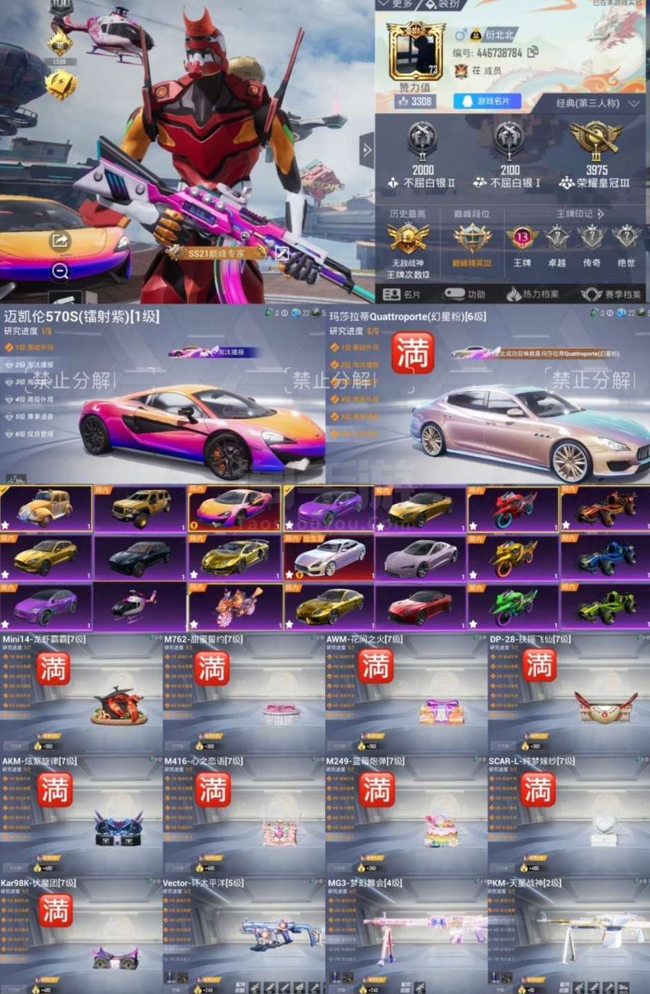 玛莎拉蒂满级 迈凯伦二级 10把满级枪 飞行器15个 具体看图片