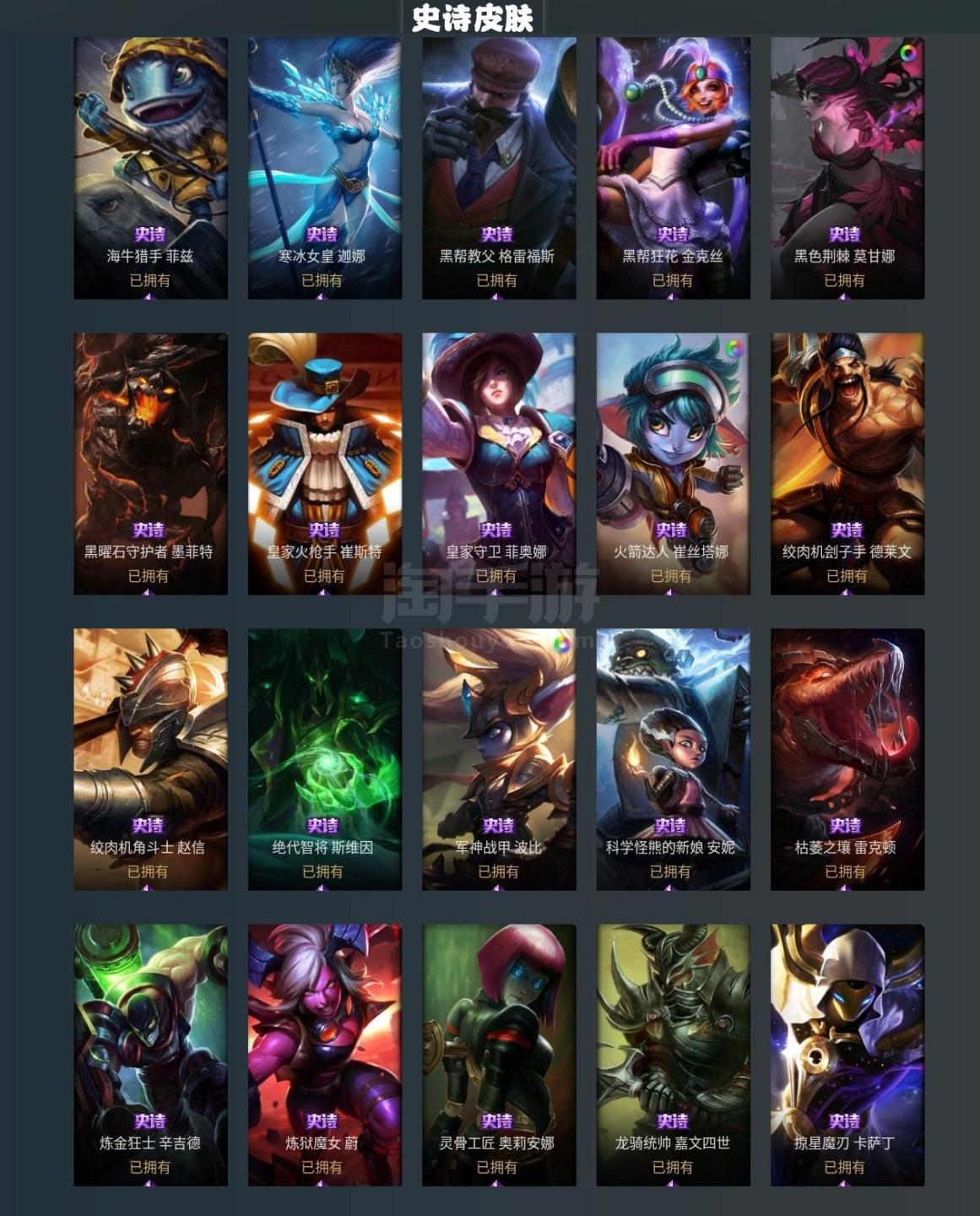 【662】154英雄/340皮肤/1神话/66限定/1炫彩/15传说/88史诗