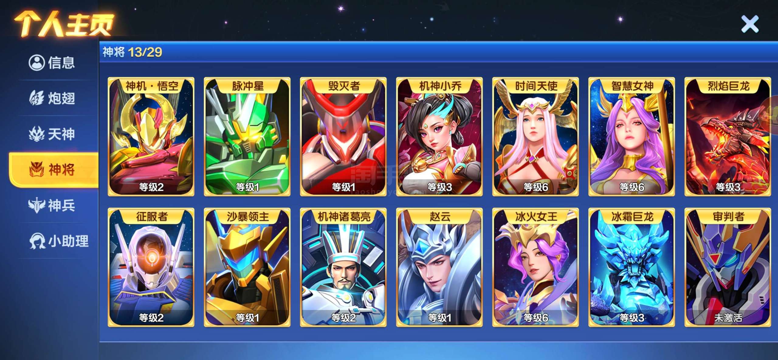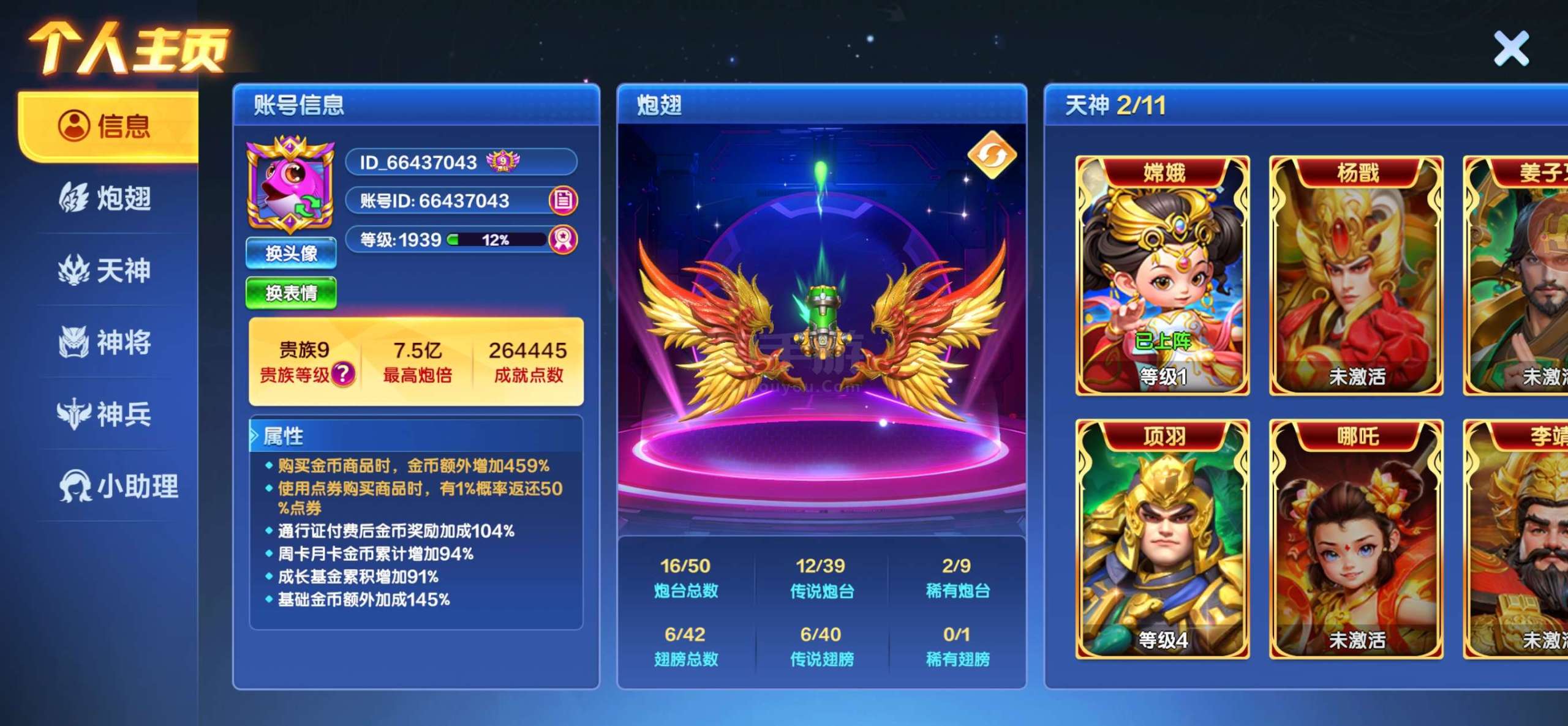 安卓小米-项羽三级,神兵几个满级,最高7.5亿炮,高爆发嫦娥,女神都解锁了