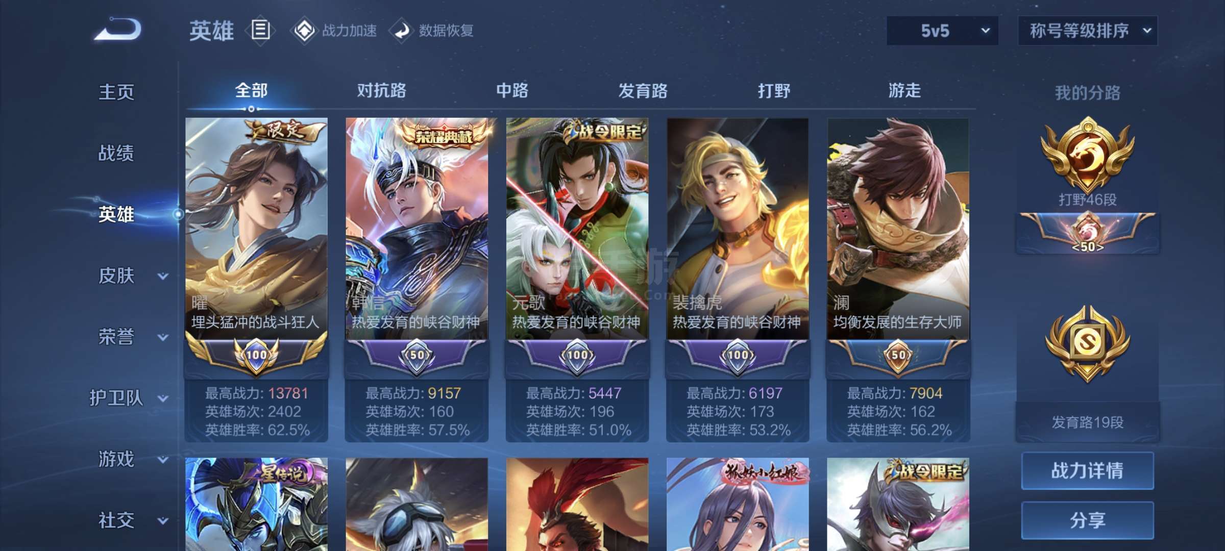 【打野41段小国标曜1.3W战力5传说V6地狱之眼 武圣 云鹰飞将 李逍遥】安卓Q