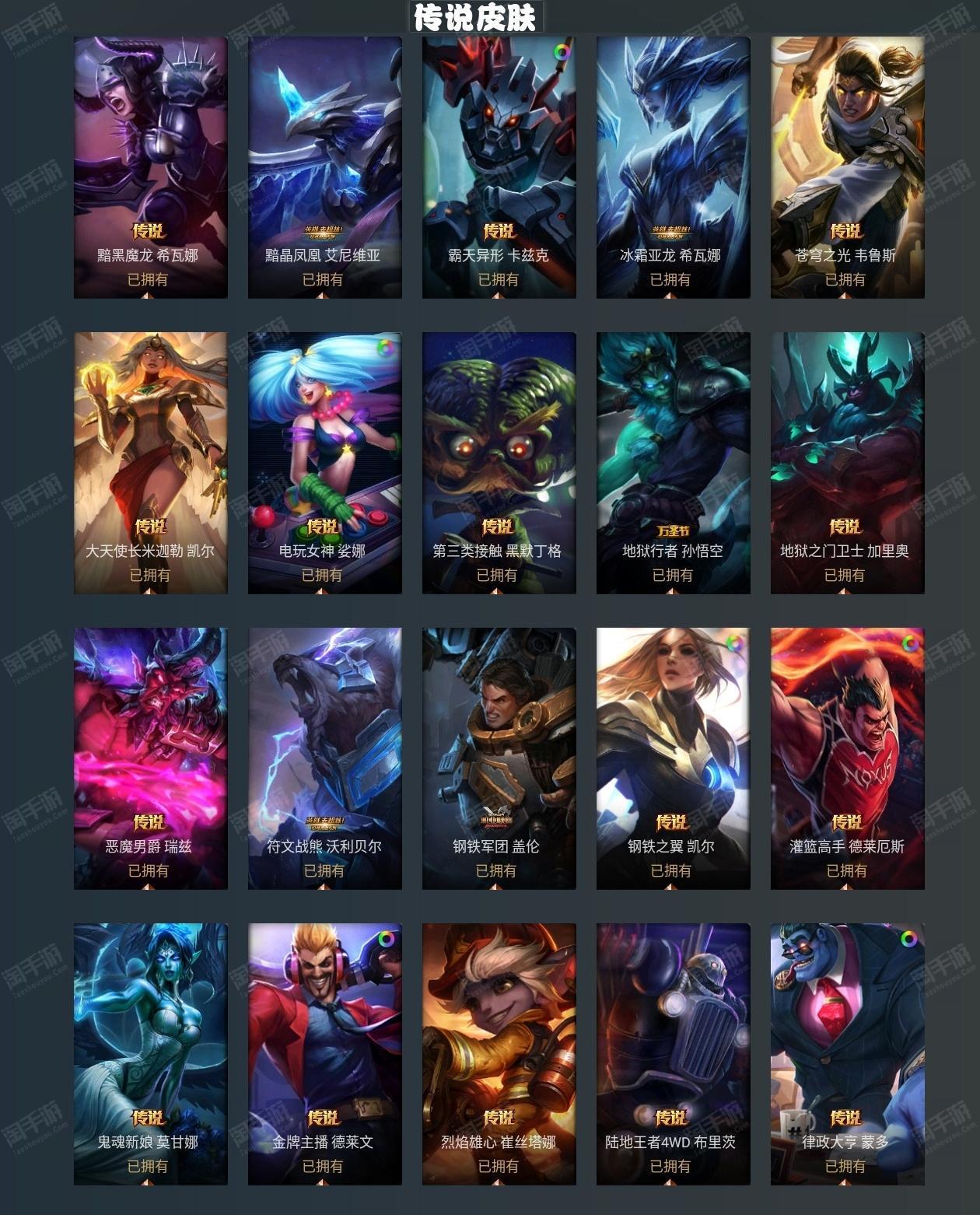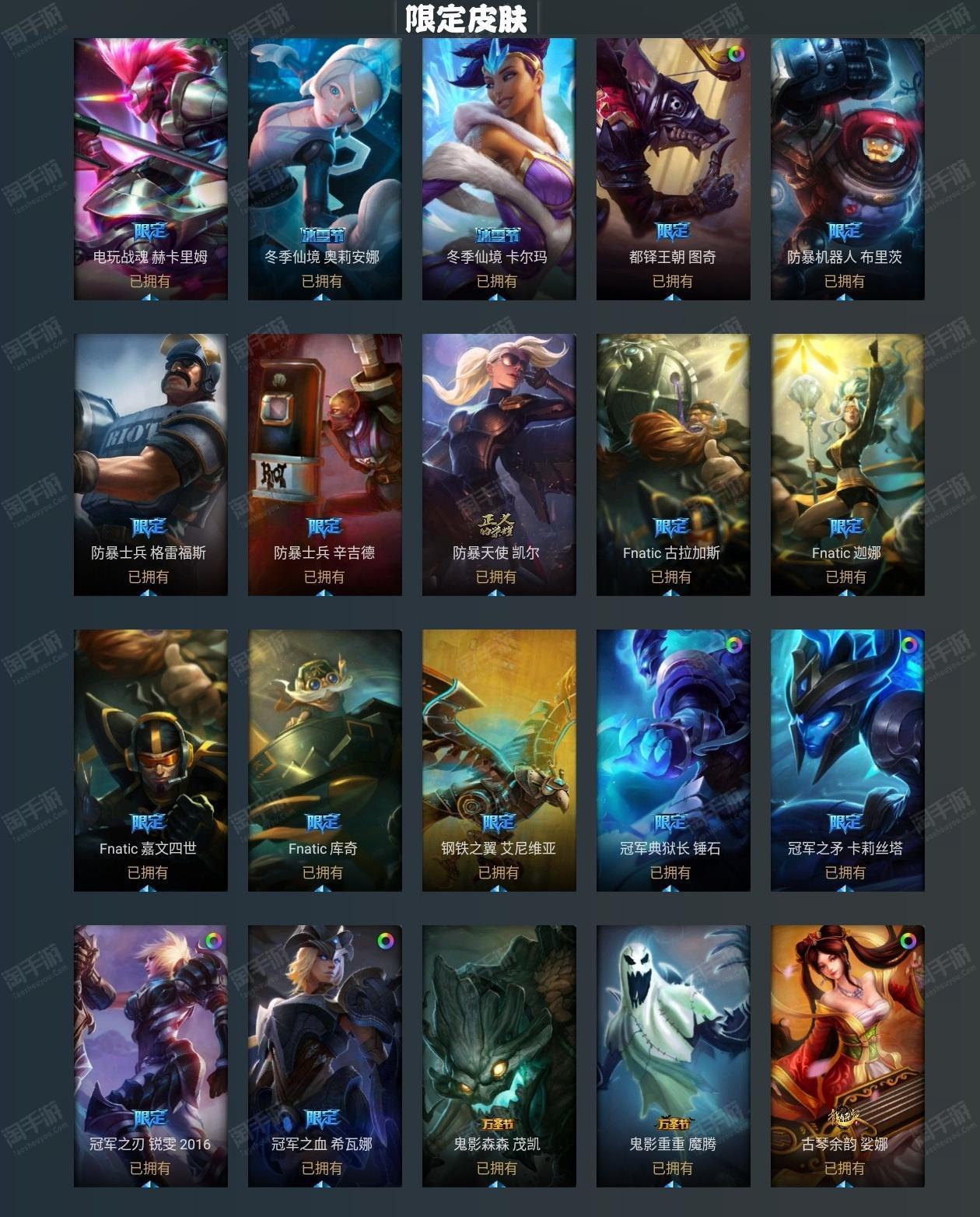 英雄联盟【端游】【53】164英雄/598皮肤/2终极/1神话/115限定/2臻彩/55炫彩/