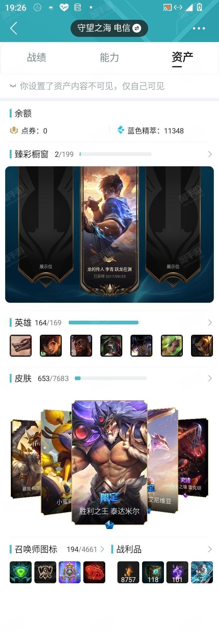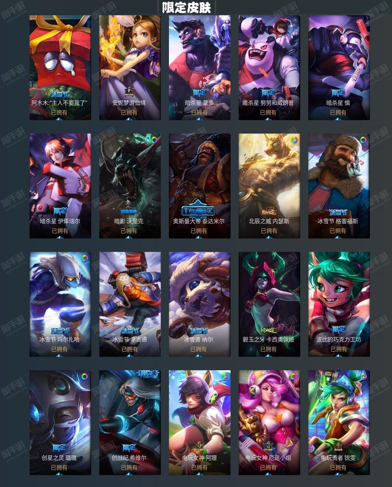 【53】164英雄/598皮肤/2终极/1神话/115限定/2臻彩/55炫彩/47传说/152史诗/未定级账号等级:30/十周年纪念安妮/灵魂守卫乌迪尔/未来战士伊泽瑞尔/阿木木主人不要我了/安妮梦游仙境/暗杀星蒙多/暗杀星努努和威朗普/暗杀星慎/暗杀星伊泽瑞尔/暗影沃里克/奥斯曼大帝泰达米尔/冰雪节格雷福斯/冰雪节玛尔扎哈/冰雪节辛吉德/冰雪兽纳尔/波比的巧克力工坊/创星之灵璐璐/创战纪希维尔