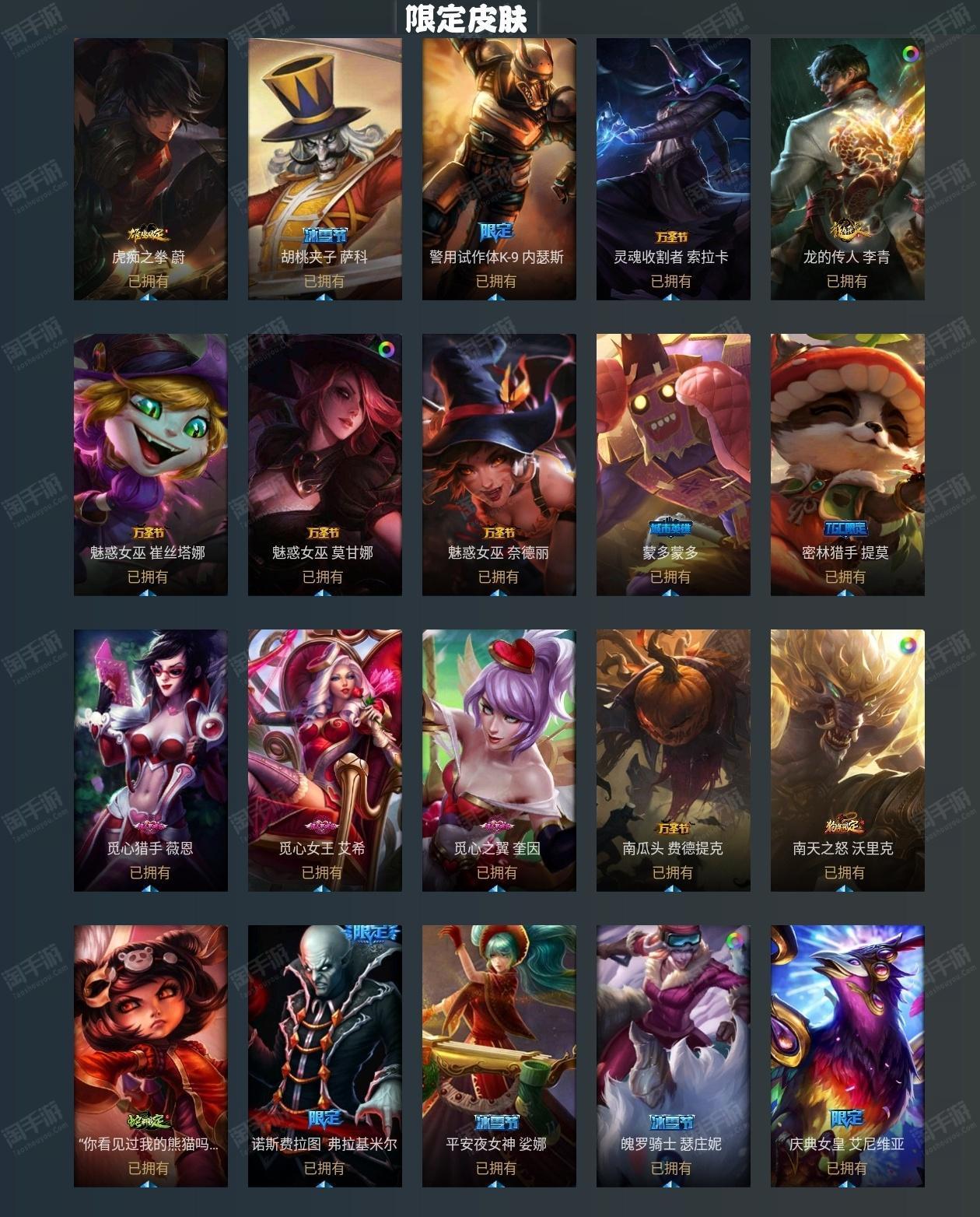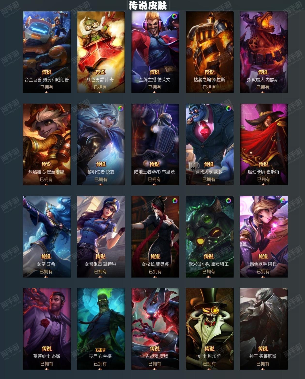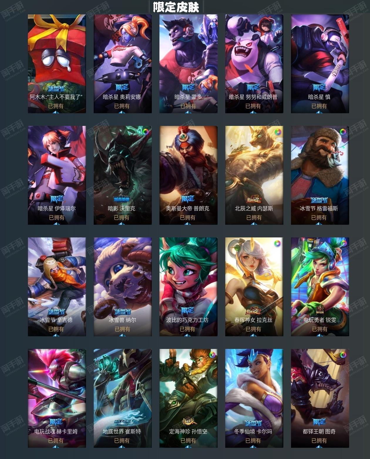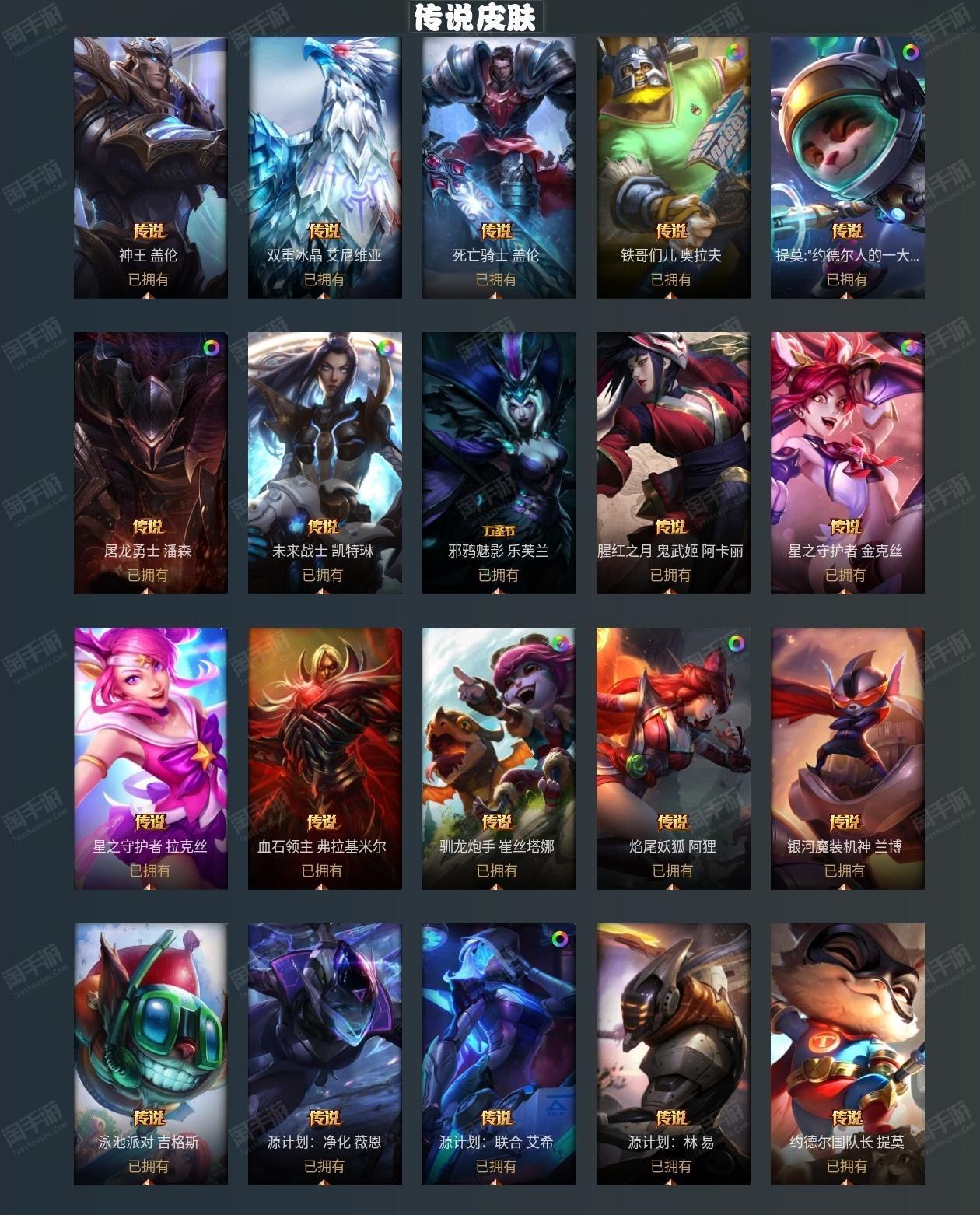 英雄联盟【端游】【54】163英雄/687皮肤/3终极/5神话/123限定/89炫彩/65传说