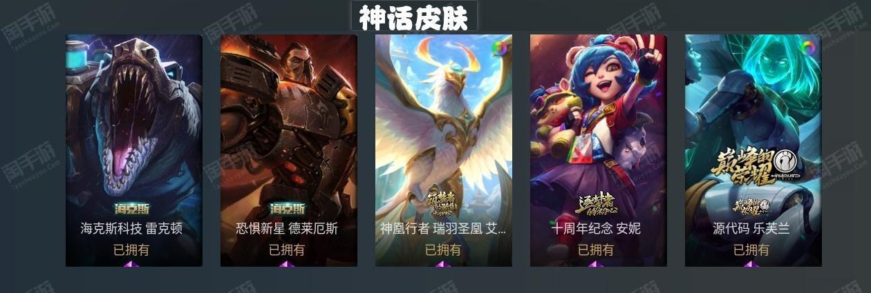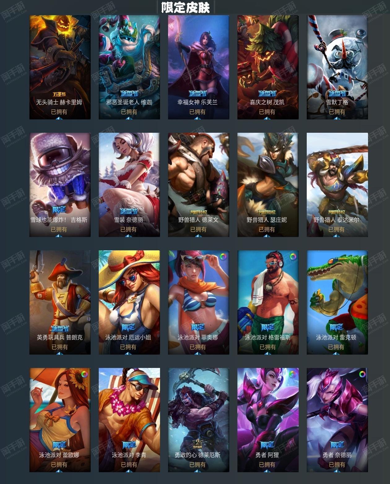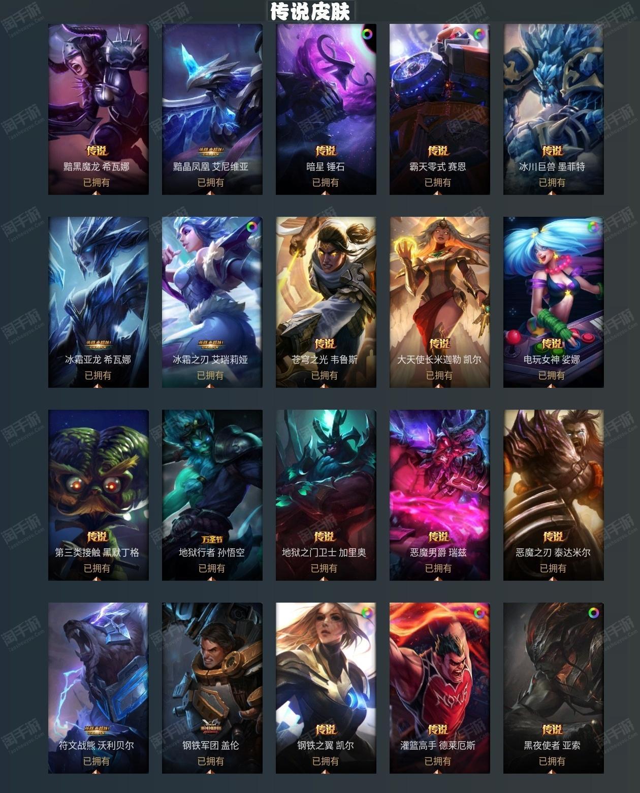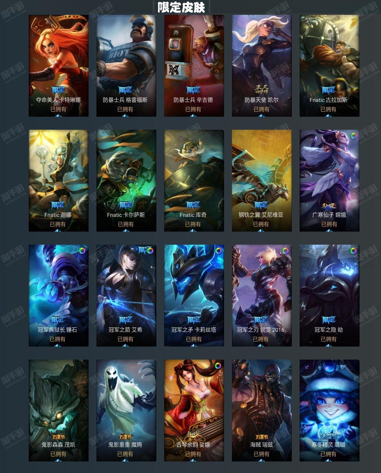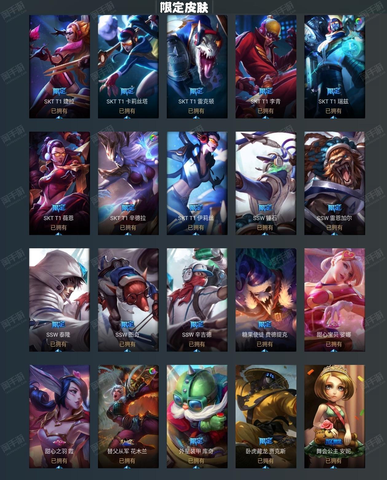 英雄联盟【端游】【54】163英雄/687皮肤/3终极/5神话/123限定/89炫彩/65传说