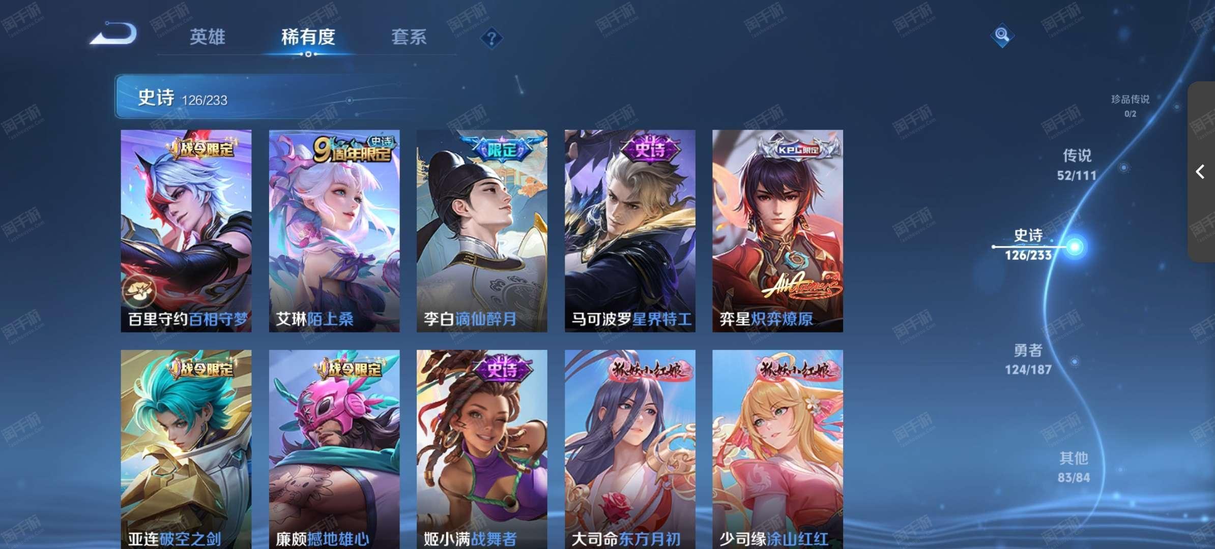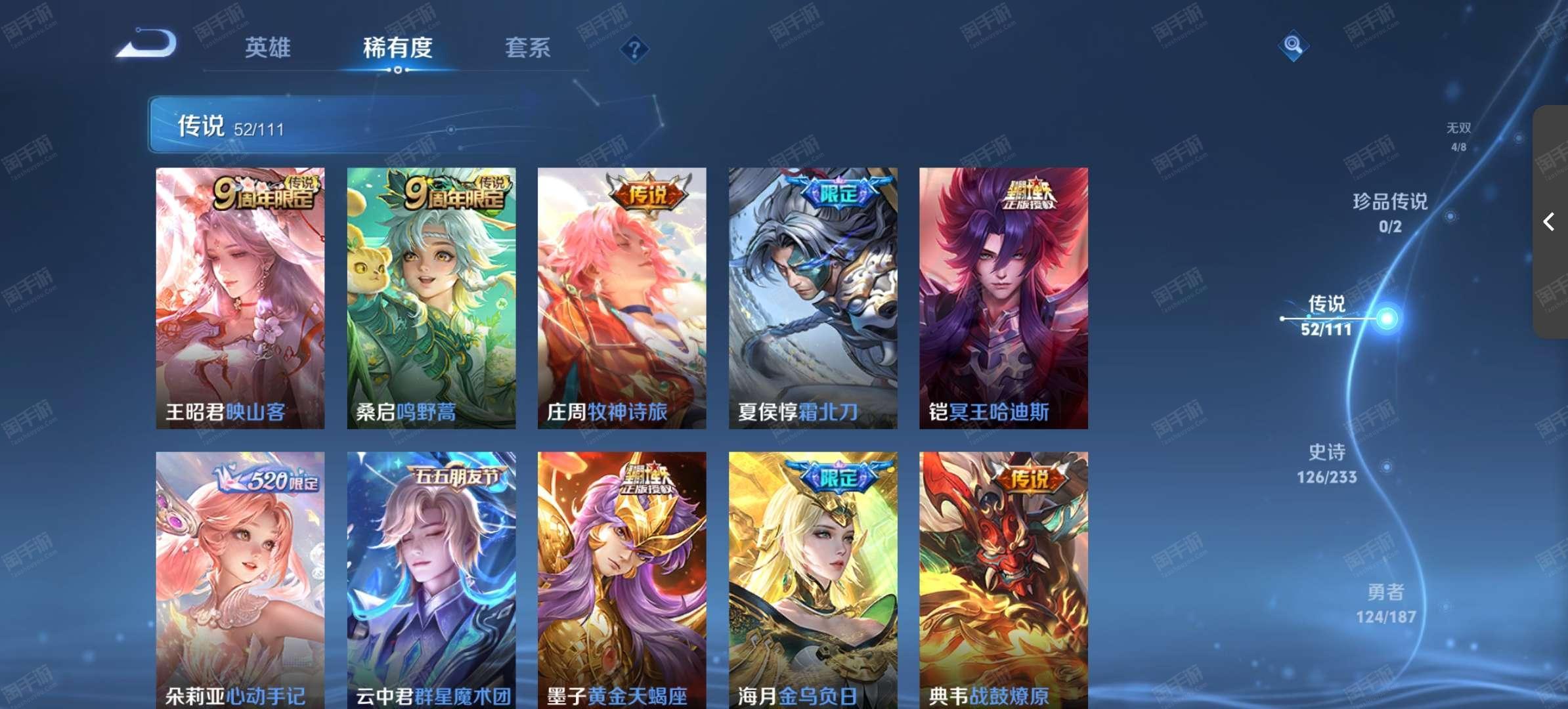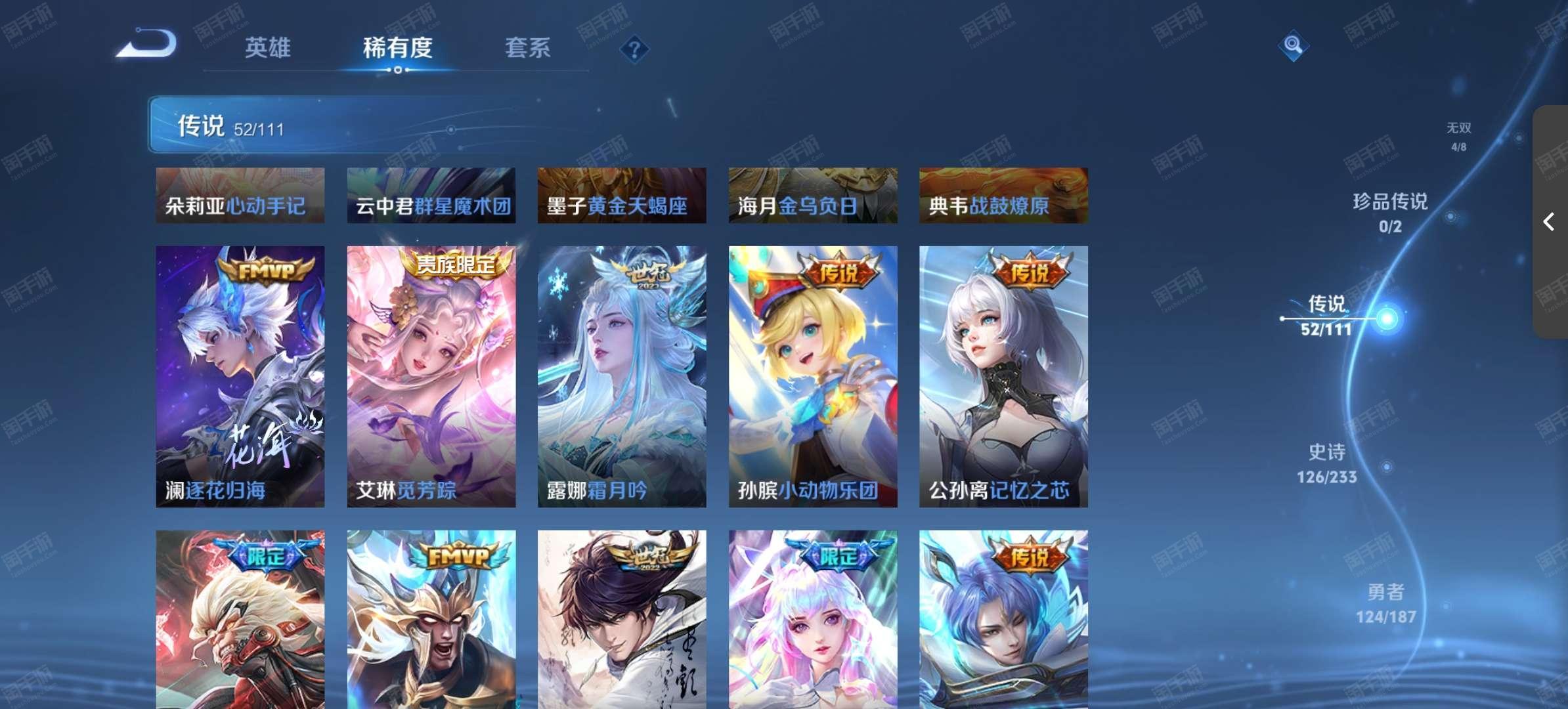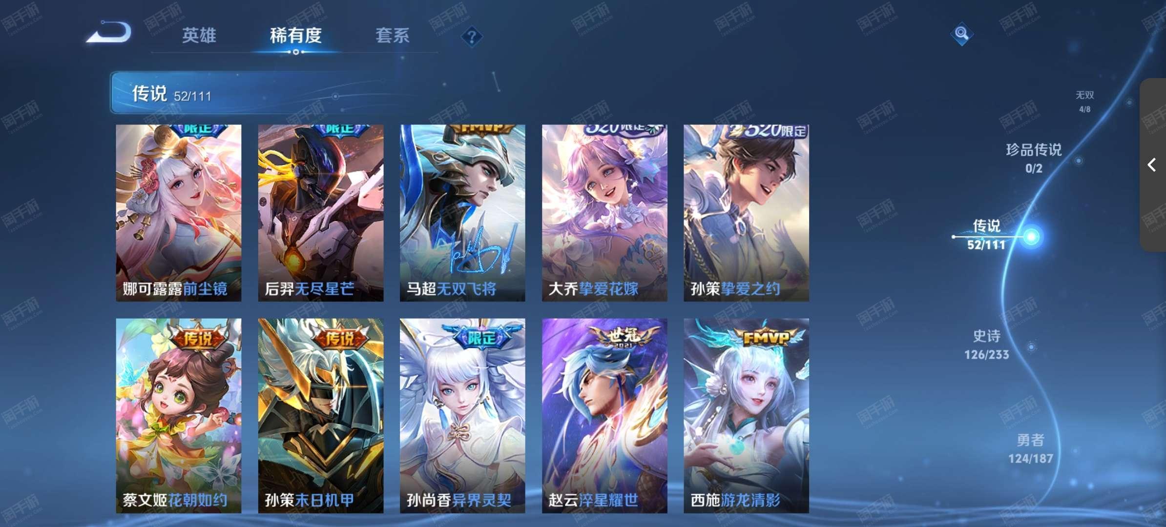 52个传说皮肤,四个无双传说,三个小兵皮肤,无双贵族十