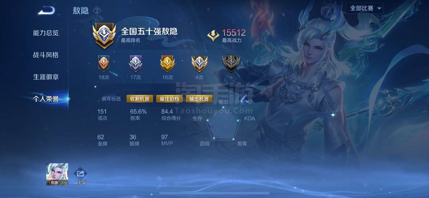 小国阿离熬隐1.6w高评分高胜率三无小号