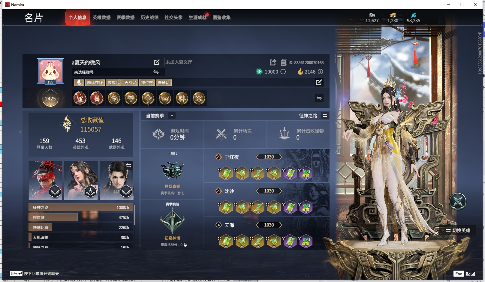 [4940935]F497【有换绑冷却】【网易邮箱账号】标准版,6红137金,总收藏值115057,
