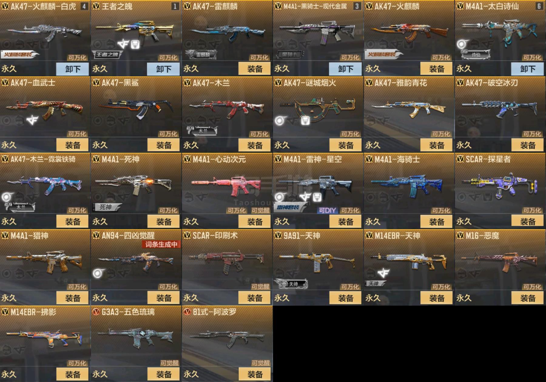 1478555_安卓Q【实名可改】V5-55V1王者 12把钥匙【套装(仅含主武器副武器刀)】 毁灭套 木兰套 冰锋套 【王者武器】 王者之魄 【主武器】 巴雷特-定军-一战杨威 M200-幻神 81式-阿波罗 AK47-火麒麟 AK47-雷麒麟 AK47-破空冰刃 AK47-雅韵青花 AK47-黑鲨 AK47-木兰 AK47-血武士 AK47-木兰-霓裳铁骑 AA12-火药 M4A1-黑骑士-白