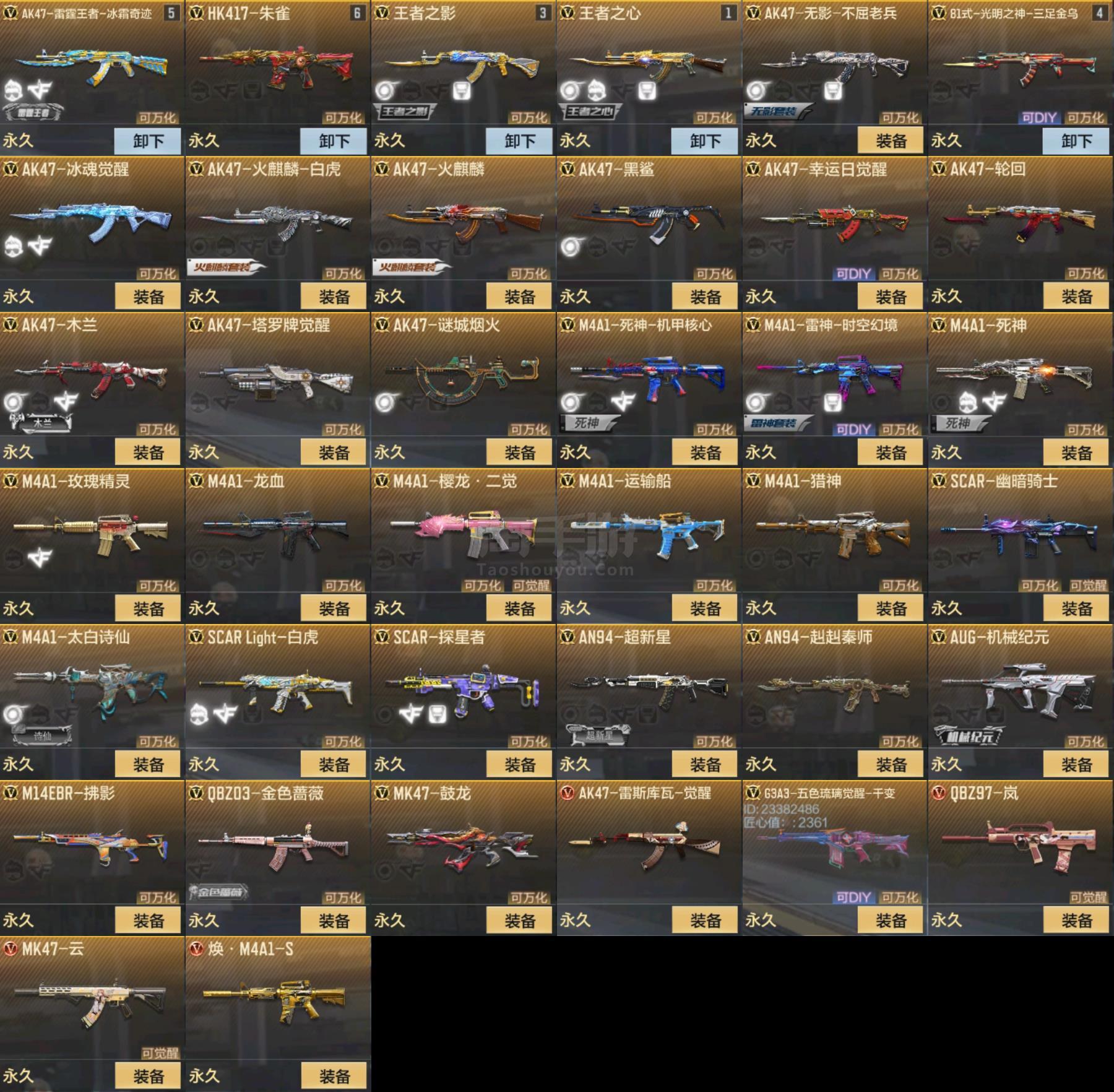 1476742_安卓Q【有二次可修改实名】V6-106V4王者【套装(仅含主武器副武器刀)】 毁灭套 诗仙套 无影套 木兰套 冰锋套 【王者武器】 AK47-雷霆王者-冰霜奇迹 王者之心 王者之影 王者之锋 【主武器】 KSG-孟获 AWM-妙才 81式-光明之神-三足金乌 AK47-塔罗牌觉醒 AK47-冰魂觉醒 AK47-轮回 AK47-黑鲨 AK47-木兰 AA12-火药觉醒 M4A1-雷神